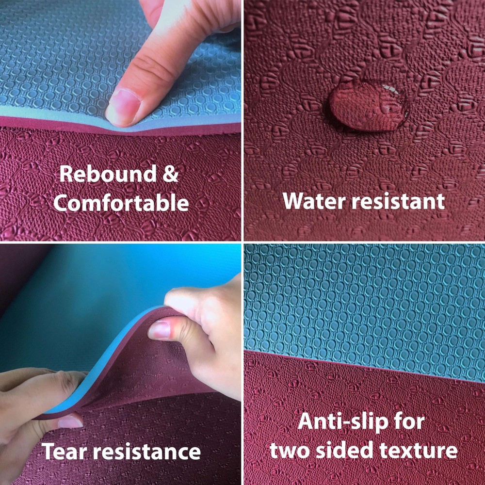 Material: Eco-Friendly Tpe Material Part Number: S01004-3 Type: Does not apply Package Dimensions LxWxH: 24.25x7.48x6.46 Inches UPC: Does not apply Brand: Does not apply Model Number: S01004-3 Sport Type: Yoga, Yoga Size: 72" X 24" X 2/5" Care Instructions: Hand Wash Only Color: Dark Red & Blue Gray Weight: 3.13 Pounds gtin13: Does not apply