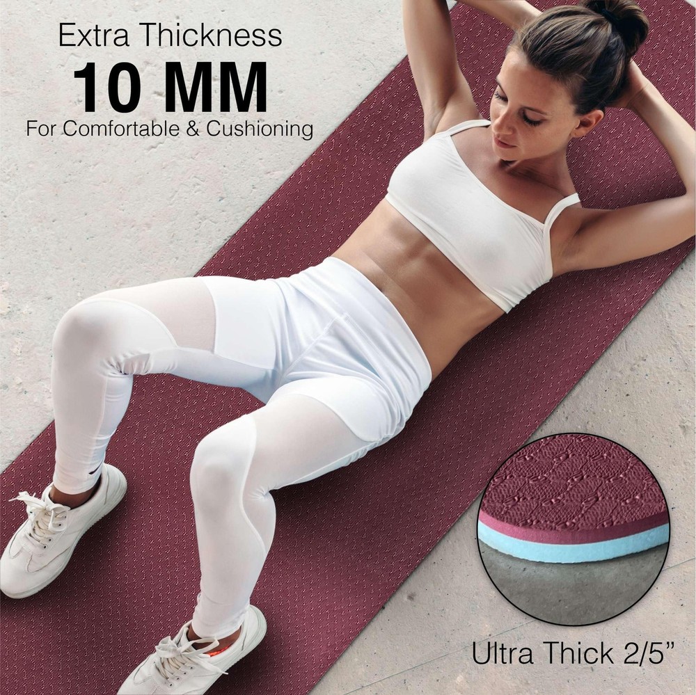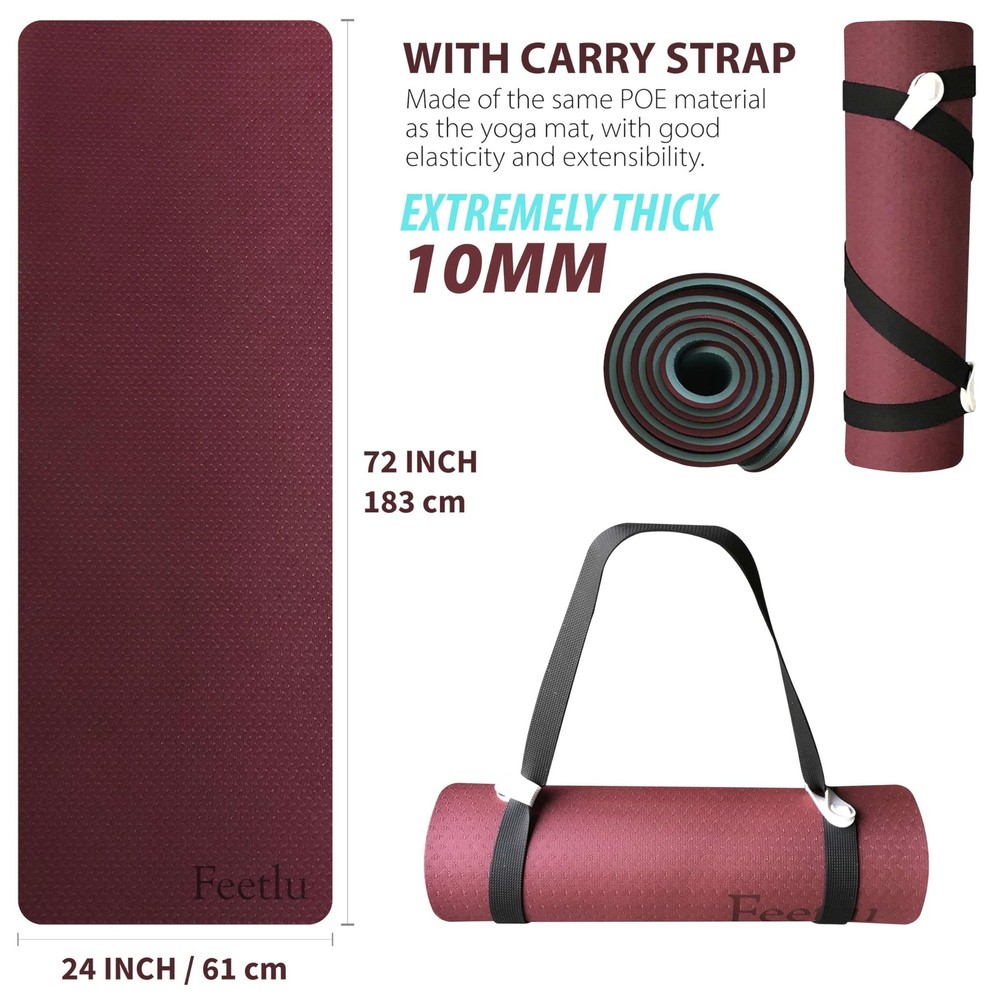 Extra Thick Exercise Yoga Mat with Strap - 2/5 Inch (10MM), Non-Slip Workout ...