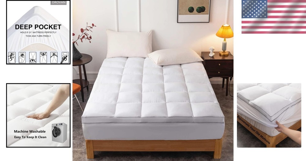$ 10.03BEDLORE Queen Mattress Topper Bamboo Viscose Thick Pillow Top Stretch Pockets