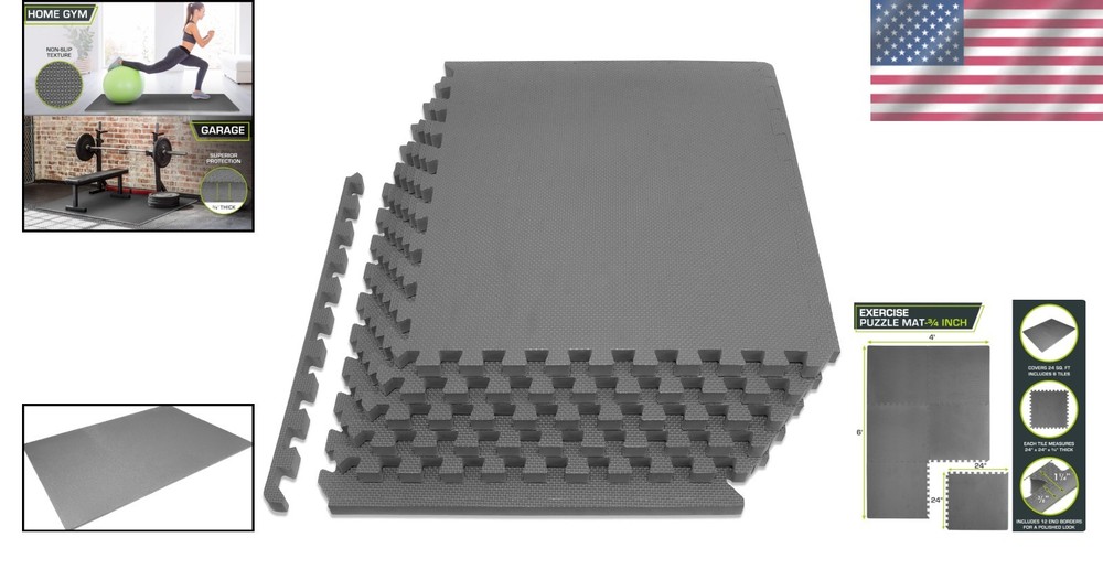 Extra Thick Puzzle Exercise Mat ¾” and 1” - EVA Foam Gym Flooring Solution ‹ › ‹ › ‹ › ‹ › ‹ › ‹ › ‹ › ‹ › ‹ › Extra Thick Puzzle Exercise Mat ¾” and 1” EVA Foam Gym Flooring Solution Transform Your Space: Elevate your workout experience and create a comfortable exercise area with our Extra Thick Puzzle Exercise Mat. Available in both ¾” and 1” thickness, these mats provide a perfect protective solution for wood, concrete, or carpet flooring. Features: Protective, Portable Flooring: Dense, durable tiles designed to withstand heavy use and gym equipment. Covers 24 sq. ft. Each tile measures 24” x 24” x 3/4” or 24” x 24” x 1” thick, including 6 tiles and 12 end borders for a polished look. Simplistic Assembly: Lightweight pieces quickly connect; easy to disassemble and move with double-sided tape for maximum floor grip. High-Quality Foam: Crafted from high-density EVA foam, providing optimal support and cushioning while being free from toxic phthalates. Safe & Low-Maintenance: Non-skid textured surface ensures traction; water-resistant and noise-reducing design enhances the workout environment. Benefits: Durable and resilient under heavy equipment Soft feel with non-skid traction for safe workouts Quick and easy assembly saves you time Low-maintenance, perfect for active families and businesses Designed to absorb impact and provide cushion to sensitive joints Why Choose Our Extra Thick Puzzle Exercise Mat? If you’re searching for an exercise mat that combines comfort, durability, and style, look no further. Our Extra Thick Puzzle Exercise Mat is the ultimate choice for fitness enthusiasts, providing an ideal surface for yoga, gymnastics, wrestling practice, and commercial use. Upgrade your gym experience with these versatile, customizable flooring solutions and enjoy the benefits of a safe and supportive workout environment. Don’t compromise on your fitness journey – order your Extra Thick Puzzle Exercise Mat today and transform any area into your personal gym sanctuary! Shipping Free & Fast Shipping - We offer free shipping to most of the USA with a normal delivery time of 3-7 days. However, due to the current situation, additional delivery time (up to 3 weeks) may be required for some items. Alternative Carriers - We may use alternative carriers (e.g. USPS, FedEx, UPS, etc.) to ensure your package arrives safely and on time. Due to the use of multiple carriers, we are unable to provide a tracking number automatically. Handling Time - Orders are processed and shipped within 1-2 business days of receiving cleared payment. Shipping Restrictions - Shipping to Alaska, Hawaii, Puerto Rico, Guam, and other US territories may incur shipping charges or delivery restrictions. Please contact us before ordering, or your order can be refunded/cancelled. State Restrictions - There may be restrictions based on your state of purchase. For example, certain items may not be shipped to California due to state regulations. Contact for Tracking Updates - If you require tracking updates or have any concerns about the delivery of your order, please feel free to contact us, and we will be happy to assist you. Return 30-Day Hassle-Free Returns - We want you to be completely satisfied with your purchase. If you are not, you can return the item within 30 days of receiving it for a full refund or exchange. Easy Return Process - To start a return, simply contact us and we will provide you with a prepaid return shipping label and detailed instructions. Restocking Fee - There are no restocking fees for returns. However, the buyer is responsible for return shipping costs if the return is not due to a seller's error. Refund Processing Time - Refunds will be processed within 5 business days of receiving the returned item in its condition. Payment We accept all major credit cards, PayPal, and Apple Pay for your convenience. Your payment information is secure and encrypted to ensure a safe and seamless transaction. Please complete your payment within 3 days of purchase to avoid any delays in shipping. Feedback Your feedback is extremely important to us. We strive to provide the best products and customer service possible. If you are satisfied with your purchase, please take a moment to leave us a positive review. If you have any concerns or issues with your order, please contact us before leaving negative feedback. We are committed to resolving any problems and ensuring your satisfaction. Contact Us If you have any questions or concerns, please feel free to out to our customer support team. You can contact us through the eBay messaging system. We are available Monday to Friday, 9:00 am to 5:00 pm EST, and we will do our best to respond to your inquiry within 24 hours. Buy it now and enjoy a pleasant shopping experience! Model: Exercise Mat Size: 24" x 24" x 0.75" Item Height: 25 Inches Item Length: Exercise Mat Item Weight: 2.24 kg Shape: Square Item Diameter: 24" Unit Quantity: 1 Material: EVA,Ethylene Vinyl Acetate Sport/Activity: Gym & Training,Yoga,Wrestling,Fitness,Children’s Play Areas,Commercial Use Features: Durable,Non-Skid,Water Resistant,Noise Reducing,Protective,Portable,Cushioned,High Density Foam,Non-toxic,Low Maintenance,Textured Surface,Surface Compression Resistance Type: Gym Mat Number of Items in Set: 6 Color: Grey