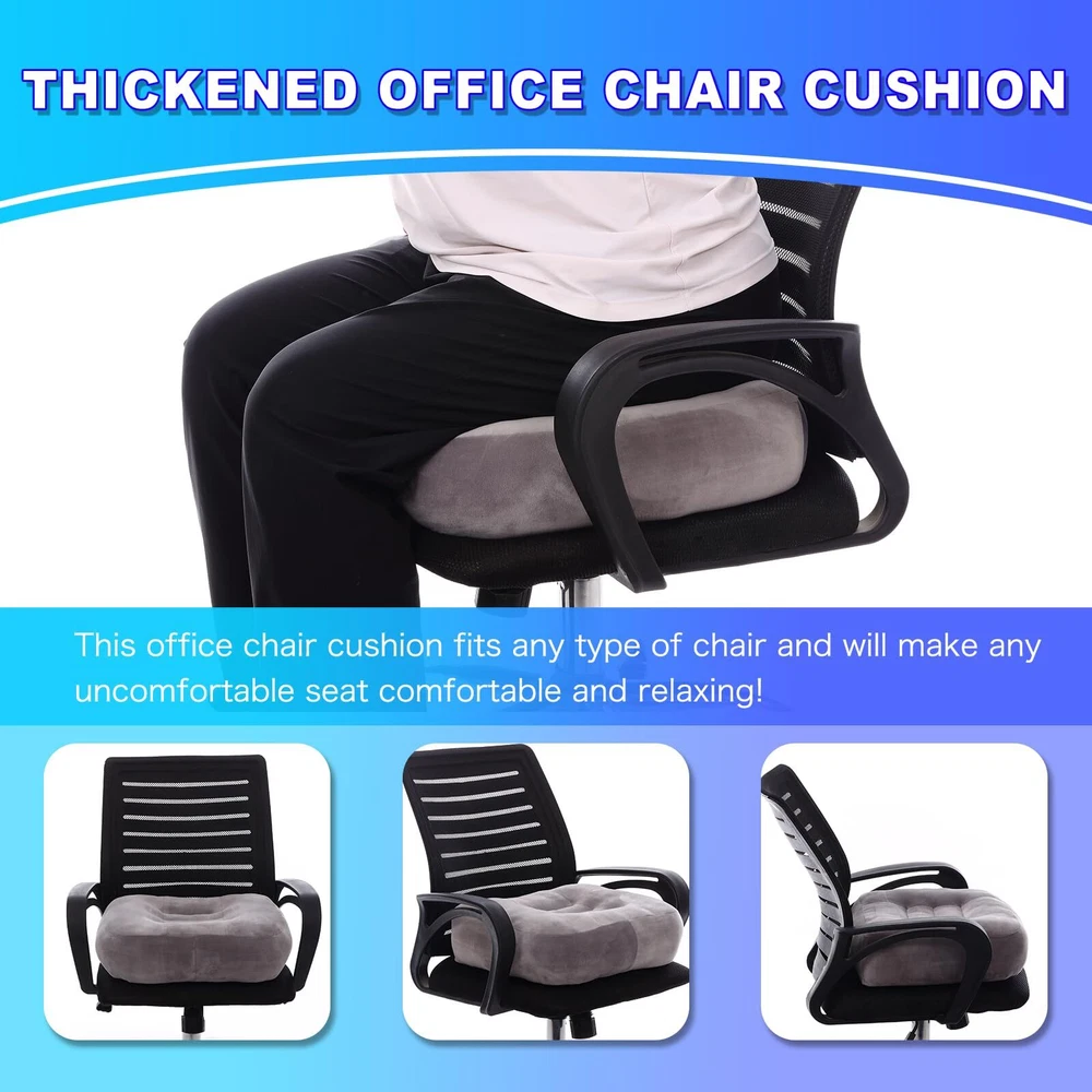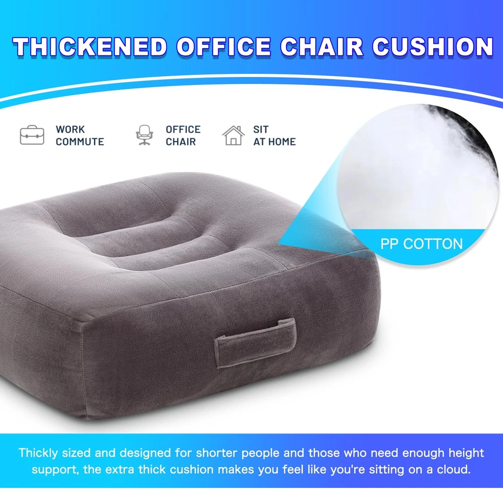 [Providing extra height]: This adult super thick seat cushions for office chairs measures 18 x 16 x 6 inches. It is designed specifically for small-sized people and those who need a comfortable cushion for extra height. It can solve the problems of worn-out seats and insufficient working height. [Ergonomic Design]: The concave design in the middle of the ergonomic orthopedic seat cushion prevents your buttocks from slipping and provides a safe, non-slip bottom surface. Whether you are sitting at your desk, in a car, in front of a computer, or at home, you can enjoy the support of the high-quality velvet chair cushion for your legs and back. This adult office-chair thicken seat can helps to alleviate pain in the sciatic nerve, coccyx, and lumbar area. [Effective support]: The 6-inch office chair cushion to raise seat height is filled with high-density, fast-rebound PP cotton, making it an ideal choice for an adult raised seat. You can feel sufficient elasticity and will not sink to the bottom. The thickened car seat cushion can broaden your field of vision, provide you clear road conditions, and effectively increase your visibility. Car seat cushions for short people. [Excellent Quality]: Our super thick seat cushion is made of high-quality velvet cover and filled with high-density, fast-rebound PP cotton, which makes it comfortable and durable. It is soft, cozy, and elegant in appearance, providing a pleasant sitting experience. It is suitable for office workers, teachers, students, drivers, travelers, and those who need to sit for a long time. Best seat cushion for long sitting. [Portable Cushion with Handles]: The cushion comes with a built-in handle and is easy for transportation. large seat cushion can be used as an office chair cushion, desk chair cushion, office seat cushion, gaming chair cushion, work chair cushion, wheelchair seat cushion, truck seat cushions, drivers seat cushion, auto seat cushion, computer seat cushion etc, and even as a chaise lounge pad, garden mat, or floor mat, which is hand-washable and machine-washable.