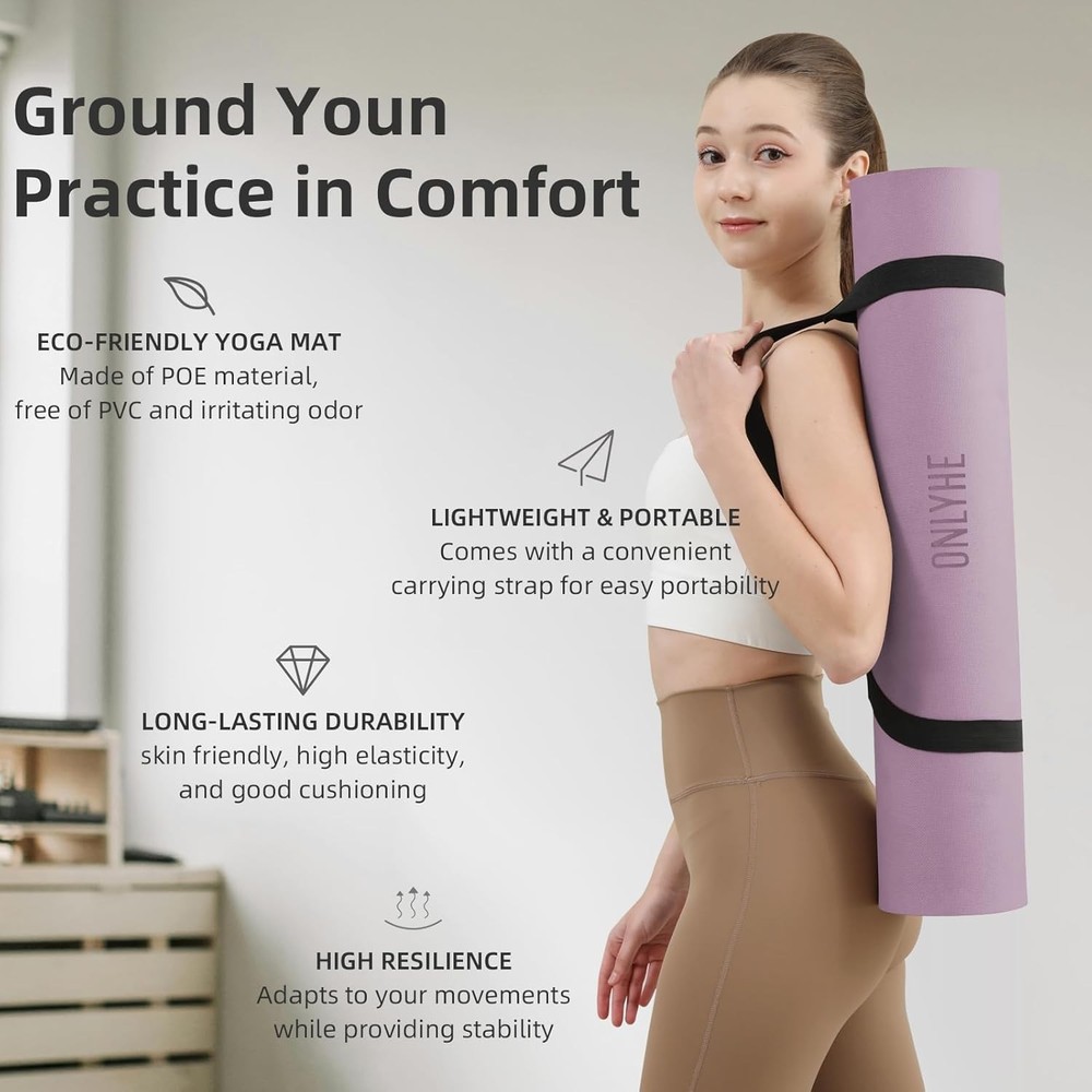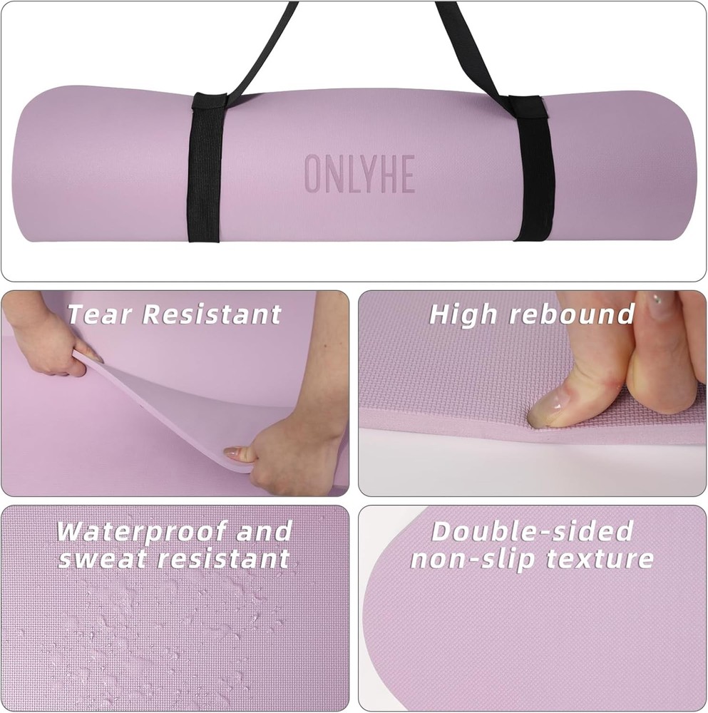 1. This yoga mat is a game-changer! The extra width and thick cushioning make every workout so comfortable—no more sore knees or slipping during tough poses. The grip is amazing, even when I'm sweating, and it's surprisingly lightweight for how sturdy it feels. Perfect for yoga, Pilates, or any floor exercise. Highly recommend for anyone who wants support and stability!