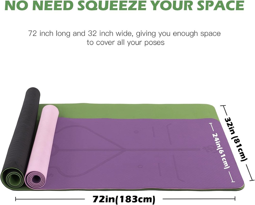 UPGRADED TPE MATERIAL - Our Umineux yoga mat is made from TPE material, which has no PVC and irritating smell, as well as more soft and light weight. Recyclable and avoid environmental pollution. DOUBLE NON-SLIP DESIGN - This workout mat has double-sided non-slip surfaces. Wavy undersides make excellent traction on the floor. It unrolls pretty flat and stays put. Special textured surface prevents your hands and feet from sliding when you sweat on it. EXTRA WIDE YOGA MAT - Size: 72inch x 32inch x 1/4inch. Longer and wider enough to cover all your poses. Because of its strong cushioning and resilience, this 6mm fitness mat can protect joints without compromising support, offering the most comfortable experience for all levels. Theritualy Extra Wide Yoga Mat For Women And Men, 72"X 32"X 1/4", Eco-Friendly Tpe Yoga Mat Non Slip, Large Workout Mats,Perfect For Barefoot Exercise (Yoga, Pilates, Fitness, Meditation) UPGRADED TPE MATERIAL - Our Umineux yoga mat is made from TPE material, which has no PVC and irritating smell, as well as more soft and light weight. Recyclable and avoid environmental pollution. DOUBLE NON-SLIP DESIGN - This workout mat has double-sided non-slip surfaces. Wavy undersides make excellent traction on the floor. It unrolls pretty flat and stays put. Special textured surface prevents your hands and feet from sliding when you sweat on it. EXTRA WIDE YOGA MAT - Size: 72inch x 32inch x 1/4inch. Longer and wider enough to cover all your poses. Because of its strong cushioning and resilience, this 6mm fitness mat can protect joints without compromising support, offering the most comfortable experience for all levels. FREE CARRY SLING & STORAGE BAG - No need to go buy extra yoga carrying strap and bag. As the yoga mat is Lightweight (2.6 lbs), you can easily carry it around with the free sling and storage bag. CARE INSTRUCTION - 1.Clean with damp cloth (cold water) or mild detergent, dry flat. 2.Do not use a washing machine or dryer or exposed to the sun for extended periods of time. 3.Designed for barefoot exercise. Your shoes or your pets' paws may tear the mat. Extra Wide Yoga Mat For Women And Men, 72"X 32"X 1/4", Eco-Friendly Tpe Yoga Mat Non Slip, Large Workout Mats,Perfect For Barefoot Exercise (Yoga, Pilates, Fitness, Meditation) Item Specifics Brand Unbranded Type Mats COLOR Vibrant Green & Black Item SIZE 31.5 x 4.5 x 4.5 inches Item Weight 1.17 Kilograms Color Vibrant Green & Black Material Thermoplastic Elastomers Product Care Instructions
