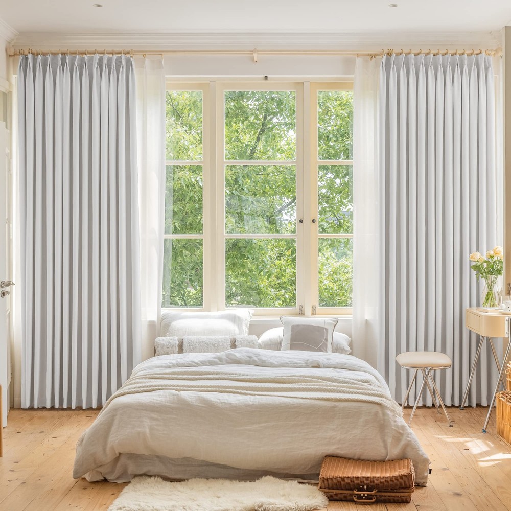 Extra Wide Pinch Pleat Blackout Curtains with Tiebacks for Patio Doors