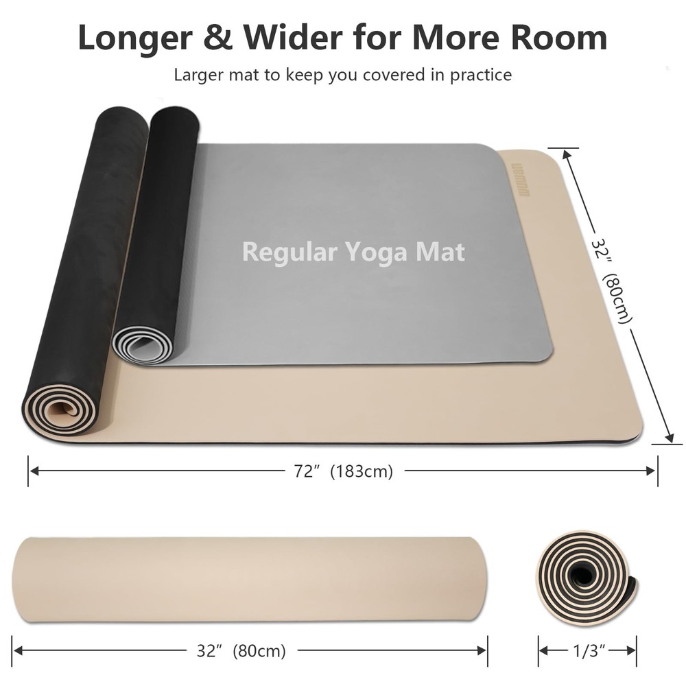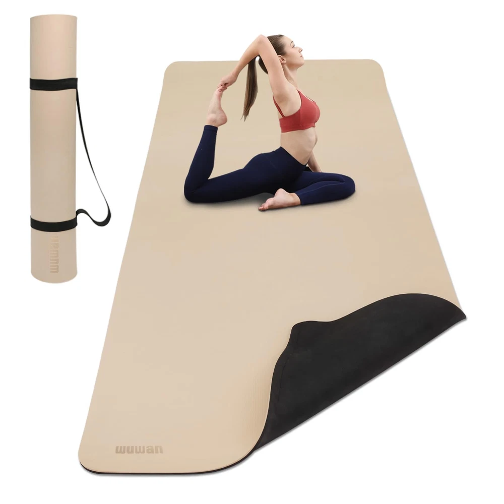 Our Yoga Mat with Strap is designed to meet the diverse needs of yoga enthusiasts. The 8mm thickness offers just the right amount of support and cushioning for your joints, allowing you to hold poses comfortably. The anti-slip surface ensures that you stay firmly in place, even during sweaty workouts, giving you the confidence to push your limits. Crafted from eco-friendly POE material, this mat is not only good for you but also for the environment. It is free from harmful substances and odors, making it a safe choice for the whole family. Whether you're a beginner or an advanced yogi, a man, a woman, or a child, this mat is suitable for all. The included carrying strap adds to the convenience, allowing you to easily roll up and carry the mat wherever you go. Use it at home, in the studio, or outdoors. With its durable construction and excellent performance, our yoga mat is the perfect companion for your yoga journey. LARGE YOGA MAT: The gym floor mat measures give you a large surface for various kinds of yoga poses. 1/3” thickness provides the perfect balance between comfort and stability, ensuring a cushioned yet firm surface for all yoga poses. Anti-Slip Surface: The specially textured surface offers excellent grip, preventing slips and slides during intense yoga sessions, enhancing safety and confidence Eco-Friendly POE Material: Made from POE, this yoga mat is environmentally friendly, non-toxic, and safe for everyone, including children and pregnant women Versatile for All: Suitable for men, women, and kids of all ages and skill levels. Perfect for various yoga styles, Pilates, and floor workouts Convenient Carrying Strap: Comes with a durable carrying strap, making it easy to transport and store. Whether going to the gym or traveling, take your yoga practice anywhere
