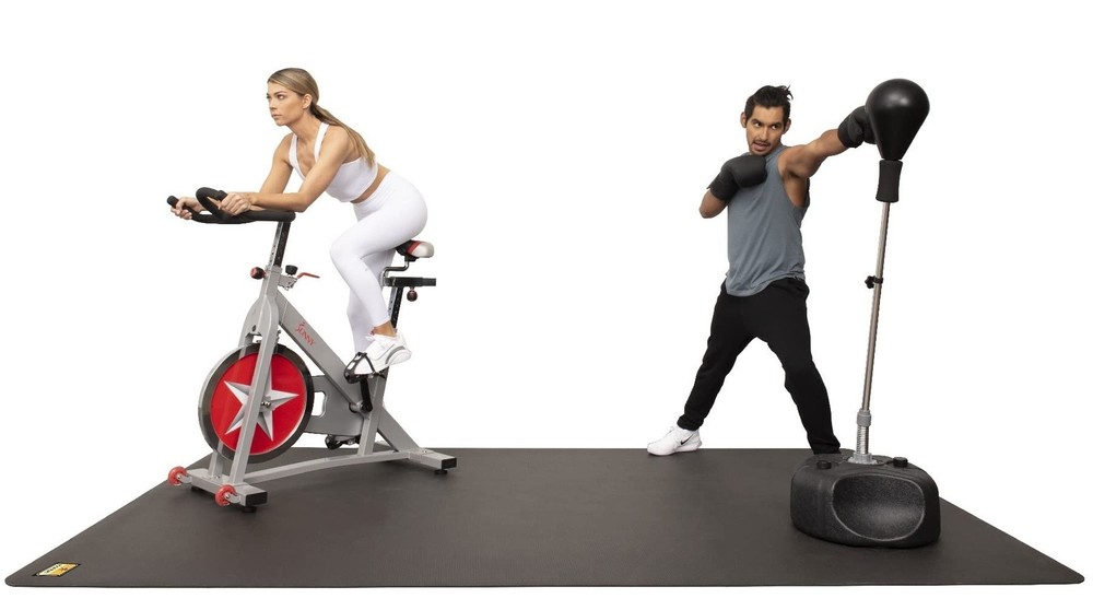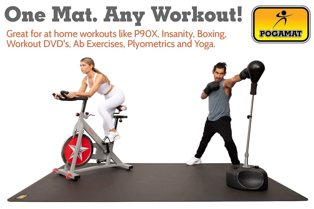6 ft X 6 ft X 1/4" thick workout mats for home gym equipment can be used on any surface. Works great on carpet, tile, cement, hardwood flooring, in the gym, garage or basement. exercise equipment. Since 2013, Large Exercise Mats and Yoga Mat. Extra Wide & Extra Long Home Exercise Mats And Yoga Mat For Women, Men, and Kids. One Mat Any Workout! Our non slip mat for home workout equipment mat is easy and quick to clean. Roll up in seconds and stores easily under the bed or in a closet. Roll out in seconds to start any workout. Can I WEAR SHOES on Oversized Exercise Mat? YES! is very shoe and plyometrics friendly and a durable shock absorbing workout mat for elliptical mat and rowing machine. It also works great for all types of gym equipment at home! shock absorbing workout mat is made of high density PVC. No Latex. Toxin Free. No Smell. We designed the perfect surface for any workouts with the perfect combination of balance and cushion for jump rope mat, push up mat, indoor cycling mat, plyometrics, kettlebell, P90X, Insanity, T25, sit up, pilates, yogamat, spin bike mat for floor, weight room and more. So many uses for one mat! Non skid and good for all exercises. Durable space for working out. comes in many different large sizes. Also, check out our yoga mats. Used By Gym Owners, Personal Trainer, Coaches, Athletes, Yogis, Moms, Current & Retired Military. Easy to Clean and Maintain. FREE Velcro Exercise Mat Straps< to keep your mat rolled tight. Tamaga Fitness Is A Family Run Company in Denver, CO. We Have Been Selling Premium Exercise Mats Since 2013 And You Are Very Important To Us. If You're Unsatisfied With Our Mats (For Any Reason) Please Contact Us And We Will Do Everything We Can To Assist You. Any Workout On Any Surface: Durable gym flooring for home gym. Floor mats for home exercise equipment and intense work from home fitness routines like P90X, body weight, as a plank pad, ab mat and a stable workout mat for your home, garage or outdoors Feels Great On Your Body: Thick exercise mats for home workout helps protect your body from injury and your floor from damage. A sound absorbing mat and good to use as treadmill mat or padded floor mat to complete your home gym or studio Thick and Reversible - The Top consists of a soft texture for added comfort and grip. The Bottom is composed of a large honeycomb groove anti-slip pad for grip Eco Friendly and No Odor: In addition to feeling nice on your body, all extra wide exercise mats are produced through eco-friendly techniques. Replacement Warranty: All Pogamats come with a lifetime warranty against manufacturer's defects in materials and craftsmanship. We stand behind the quality of our products and will replace your mat