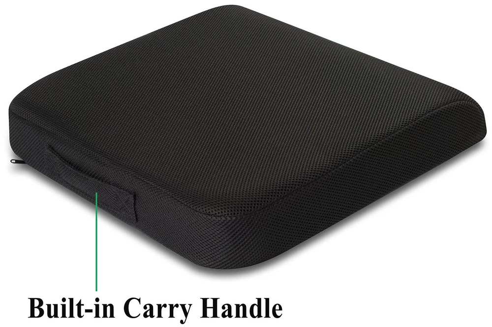 EXTRA-LARGE COMFORT (19"x17"x3"): Our extra-large size seat Cushion gives you a more comfortable fit. BREATHABLE COOLING MEMORY FOAM: Soft memory foam top layer supported by a firm premium base foam, covered with is a layer of 3D ventilated fabric to disperse heat. WON’T FLATTEN OUT: -layer design for Custom-fitting comfort every time you sit on it without flattening out. NON-SLIP COVER: Non-slip silicone layer at the bottom to keep it in place. RELIEVES BACK PAIN: Firm enough to support you and soft enough to be comfortable.