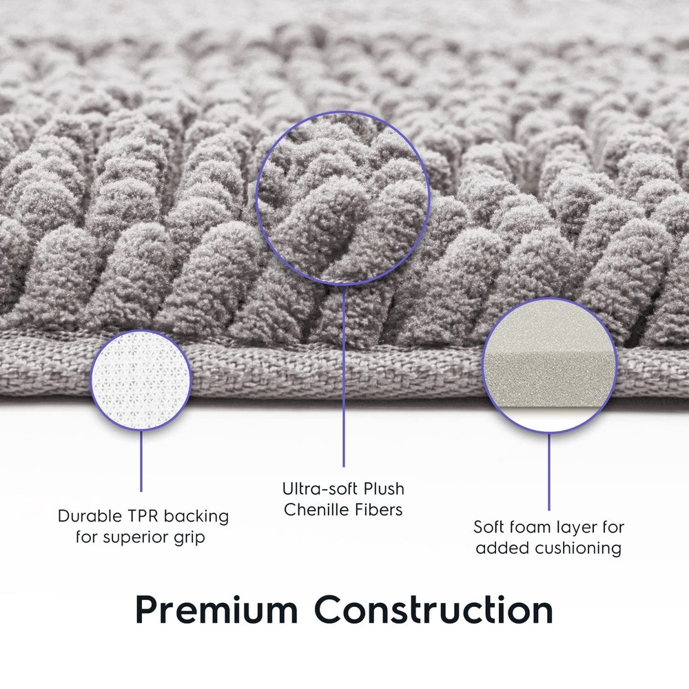 ☮️IT'S SHAGADELIC, BABY: Our rugs use thousands of ultra-soft and plush, shaggy chenille fibers for that sensational, cloud-like feeling when you step out of the shower. The backside of the bath mat features an ultra-durable TP Rubber Backing (not PVC or glue) for long-lasting use and a superb grip. 💦SUPERIOR ABSORBENCY: Taft's bath mats for the bathroom are made of thousands of plush chenille ultra-soft individual microfiber shags which traps water and keeps your floors clean and dry. The high piling 1 inch long microfibers absorb moisture and dry quickly after you step out of the shower or bathtub. ✨MACHINE WASH AND DRY: bathroom rugs are super easy to clean. The premium construction and simple design of a Chenille Bath mat allow you to machine wash and dry without worry for years to come. DO NOT BLEACH and be sure to avoid fabric softener. Make sure to machine wash cold and tumble dry on low. Color will stay vibrant for years to come no matter how many times you wash and dry! ⚠️CAUTION: Our unique non-slip bottom features high quality mesh TPR backing to prevent the mats from shifting and skidding, protecting you and family from slipping in the bathroom. Ensure the bathroom rugs are placed on a DRY FLOOR only. Ensure that the bottom of the bathmat is kept DRY. Water under the rug may cause slipping. 🛋DECORATE + LIFETIME GUARANTEE: bathroom rugs can be used as a comfortable, water-absorbent and non-slip surface to stand on for your kitchen, front door, pets, bathroom sink, tub or shower. Our extensive selection of colors and sizes makes it easy to match your unique style and decor. Every bathroom rug purchase is backed by a Lifetime Guarantee against defects in materials and craftsmanship.