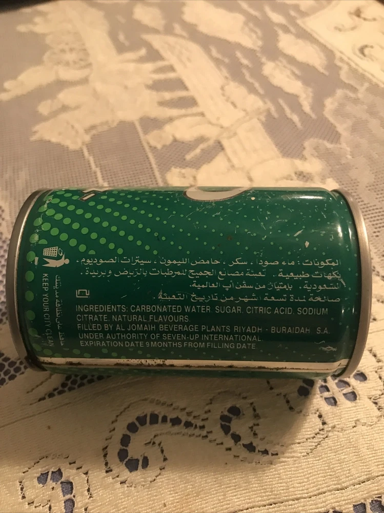 This is an extremely rare 7UP can from the 1980s, originally from Gaza Strip and made in Israel. The can is empty and is a collectible item for soda enthusiasts. It features the iconic 7UP logo and the green color associated with the brand. The can is an original item and has not been modified. The collectible can is 330ml in size and is a piece of soda merchandise and memorabilia. It is a great addition to any collection and is sure to be a conversation starter. The can is in good condition and is ready for display.