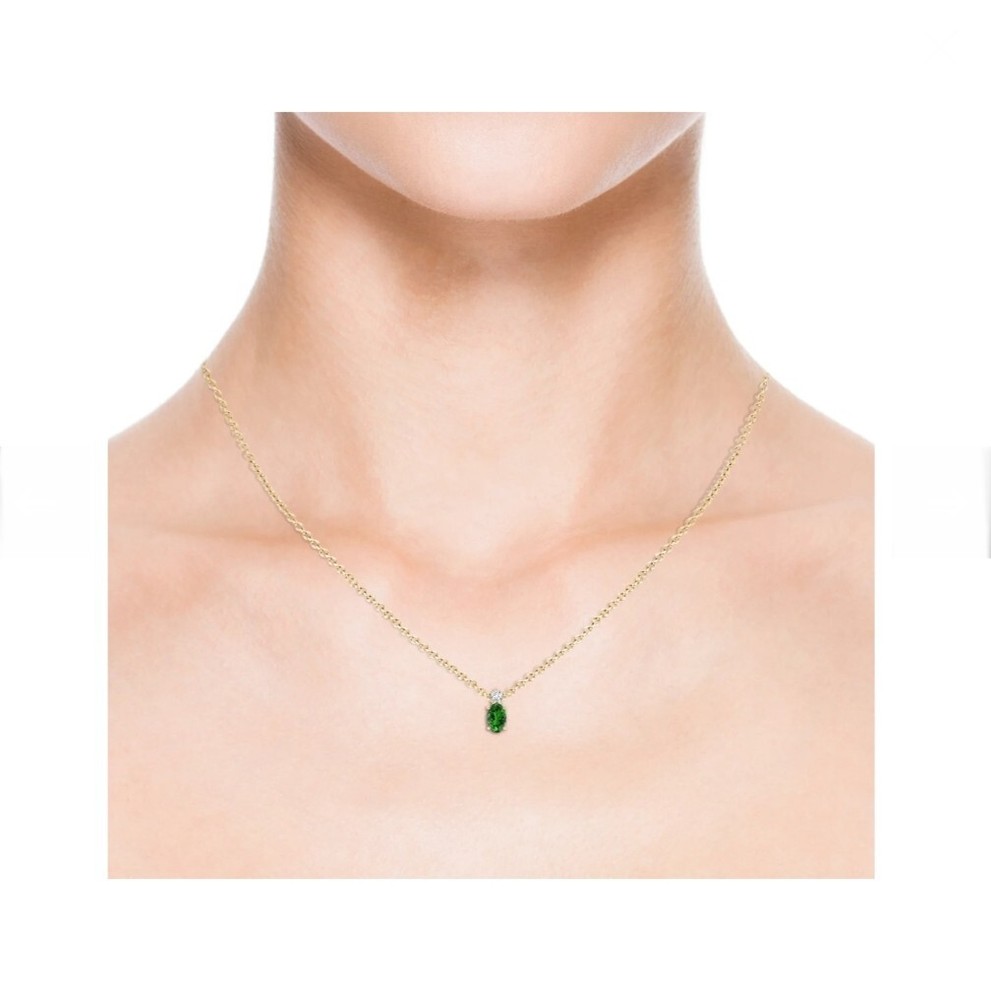 This beautiful pendant features a stunning green emerald round stone set in a silver metal with a purity of 900. The stone is eye clean and has an excellent cut grade, adding to the overall brilliance of the piece. The pendant is designed in a loop style and has a single gemstone. It is a perfect addition to any jewelry collection and is sure to catch the eye. Made in India, this pendant is a must-have for any fashion-forward woman. Details of Details:- Material: 900 Sterling Silver Gemstone: Lab Created Emerald Stone Size: 11x8.10 MM Shape: Oval Plating : Gold Available In All Size Please Contact us.