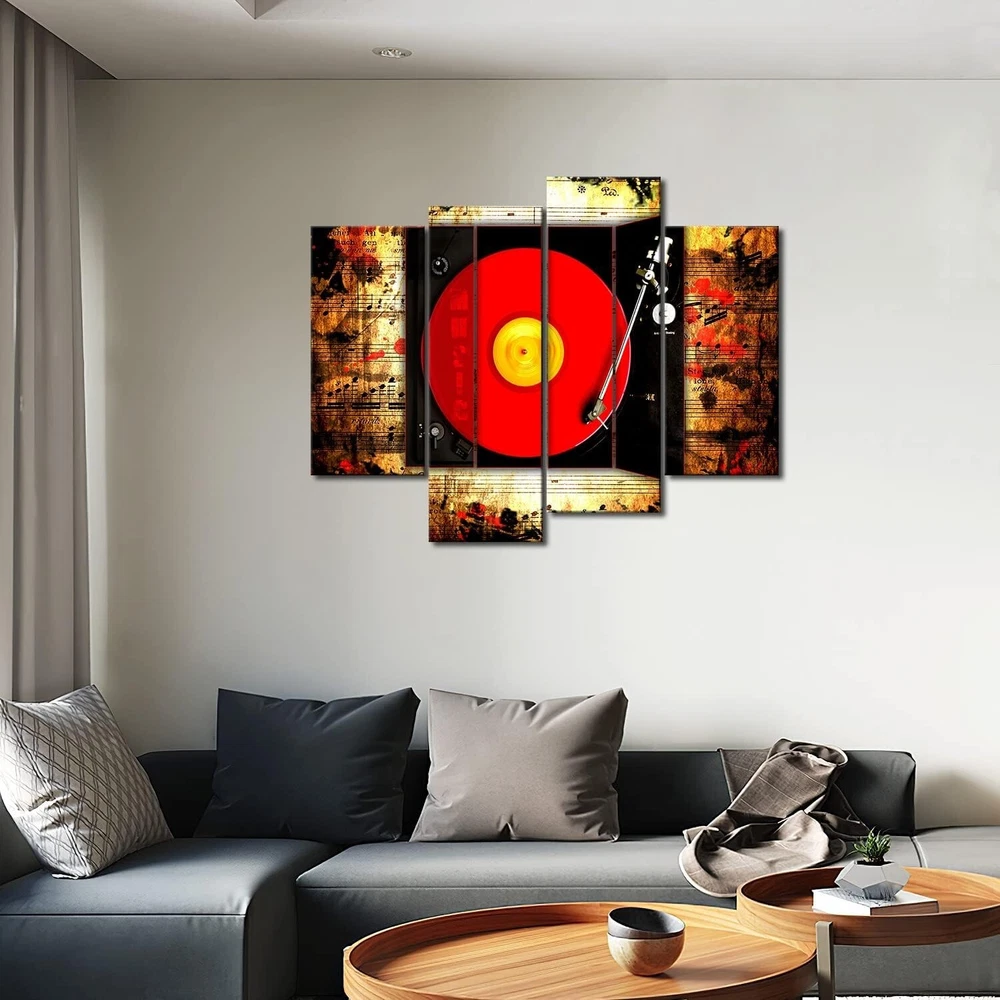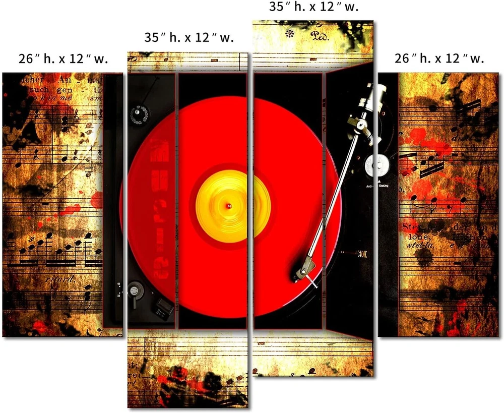 Item Dimensions L X W: 26"l X 12"w Room: Any Room, Bathroom, Bedroom, Dining Room, Kitchen, Living Room, Office, Hotel, Bar UPC: Does Not Apply Paint Type: Wood Number Of Panels: 4 Frame Type: Framed Type: Giclee & Iris Print Mounting Type: Wall Mount Item Weight: 4 lb Era: 21st Century (2000-Now) Wall Art Form: Painting Item Shape: Rectangular Color Family: White Material: Canvas, Wood Subject: Music Customized: No gtin13: Does Not Apply Package Type: Standard Packaging Additional Parts Required: No Frame Material: Wood Cover Material: Wood Size: Medium Unit Count: 4.0 Count Number Of Items: 4 Brand: Unbranded Artist: First Wall Art Style: Modern Care Instructions: Easy Care Indoor Outdoor Usage: Indoor Finish Type: Glossy Personalize: No Color: Black Signed: No Features: Ready To Hang, Gallery Wrapped, Multi-Part, Giclee Artwork Orientation: Horizontal Theme: Art, Music Paper Finish: Glossy Pattern: Printed Department: Adults, Teens, Kids