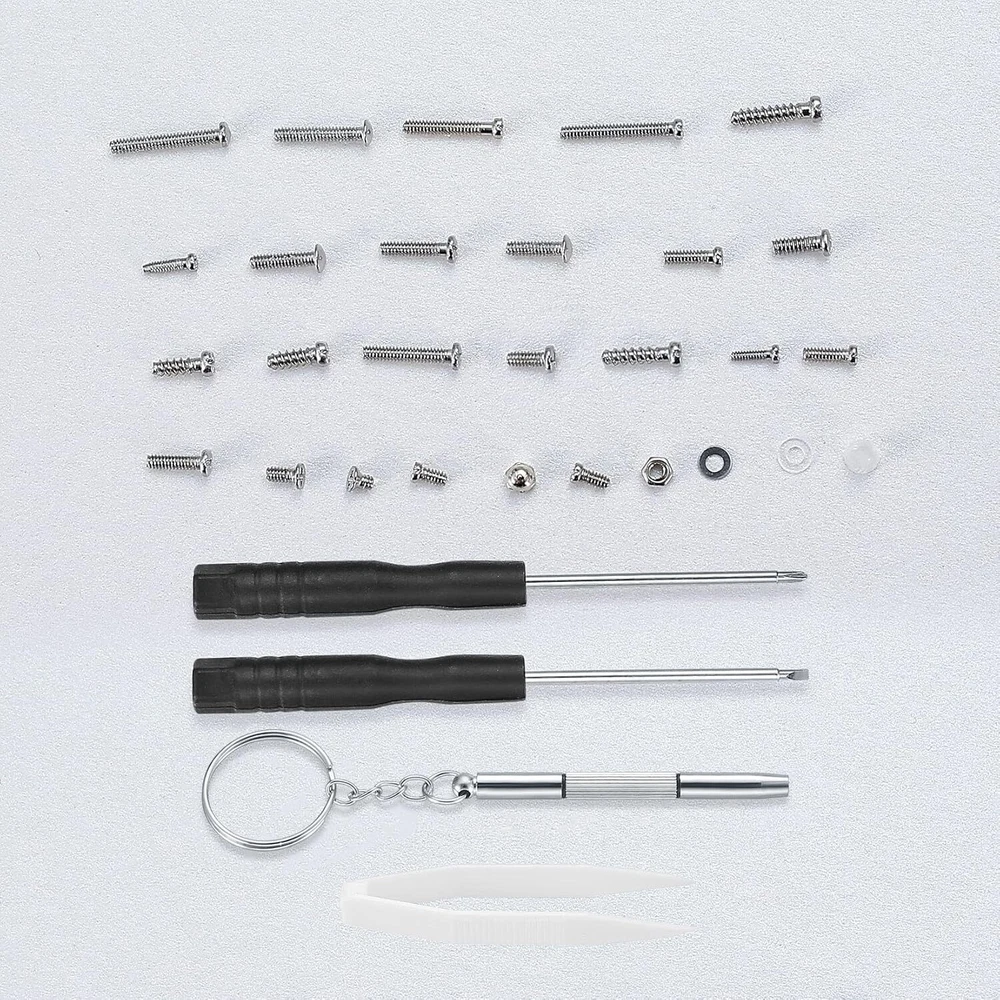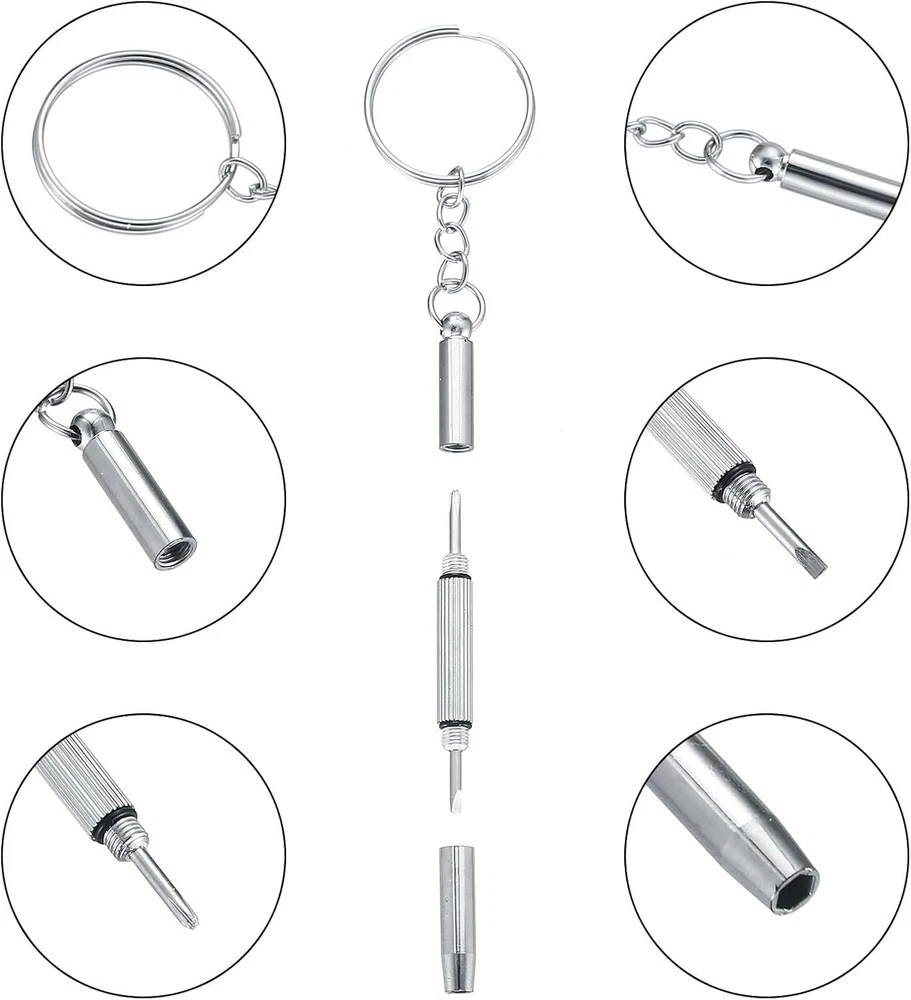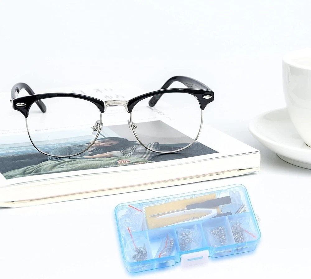 Superb Material: These glasses repair kit with screws are made of high-quality stainless steel, which are non-rust, hard, long service life. The nose pad and ear hook are made of silicone, which are more comfortable, and durable for long time use. Eyeglasses Repair Kit: Our eyeglass screws tools set has various types of screws, silicone nose pads, ear hook, plastic tweezer, micro screwdriver and fiber glasses cloth. The eyeglass repair kit with screws is a good accessory for repairing eyeglasses and sunglasses etc. Various Screws: The sunglass repair kit with screws has various screws, which can fix nose pads, temples, rimless glasses, glasses hinges and so on. The screws can also be used for clocks, watches and other items that require small screws. Easy to Store: Our eyeglass nose pads repair kit is packed in a transparent plastic box, easy to see the location of all the things. The compact and portable design of the repair tools & kits will bring your more convenience. Widely Used: This sunglasses screws repair kit is suitable for sunglasses, rimless glasses, semi-rimless glasses and frame glasses. The spectacle repair tools are complete, and you can easily fix the glasses by yourself. Specifications: - Name: Eyeglasses Repair Kit - Material: Plastic, Stainless Steel, Aluminum Steel - Color: Silver, Transparent - Quantity: 500 Pcs - Size: As Pictures Shown Feature - Our glasses repair kit is made of stainless steel and silicone, non-rust, hard, long service life, comfortable. The fit rate of various screws reaches 99%. - This eyeglass repair kit includes a variety of different sizes of micro screws and nuts, for repairing nose pad, eyeglasses frame, and legs or other parts. - Glasses screwdriver has four functions, which can be used to tighten screws or nuts. It's a good accessory for repairing eyeglasses and sunglasses etc. - Screwdriver can easily remove tiny screws from the glasses and meet your general eyeglasses and watches repair works. With a key chain, it's portable and easy to hang. - The eye glass repairing kit with nose pads also accompany with a multi-function eyeglasses screwdriver with keychain for easy carry, a tweezers to pick up small parts, a pieces of glasses cloth to clean glasses and a box to storage. Package Includes: 1x 4 in 1 Screwdriver 1x Pair of Silicone Ear Pads 10x Pairs of Nose pad (screw-on) 10x Pairs of Nose Pads Nut Many kinds of Screws(Model as Shown) Friendly Reminder - When the nose pad turns yellow or blue, please replace it in time. - When using the glasses cloth, it is recommended to wipe the lens horizontally. Do not make a circular motion to avoid scratching the lens.