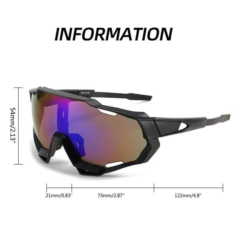 Features: The PC lens are anti-glare and anti-sun, provide high for for your riding, reduce eye fatigue. Soft nose pad reduces the burden on the bridge of the nose, make you comfortable to wear. The temples are strong, not easy to fade and break, and not easy to slip off. UV for All of our lenses block of UVA, UVB, UVC as well as harmful blue light to 400nm. Suitable for outdoor sports, such as road driving, cycling, running, skiing, Specifications: Material:PC Frame Width: 146mm (5.71inch) Lens Width: 73mm (2.83inch) Lens Height: 54mm (2.14inch) Nose Bridge Width: 21mm (0.82inch) Temples Length: 122mm (4.8inch) Color:As Picture Shown Package Includes: 1x Sunglasses note: 1.Please allow 1-2cm errors due to manual measurement, make sure that you do not mind before you order. 2.Due to the difference between different monitors, the picture may not reflect the actual color of the item. Thanks for your understandings.