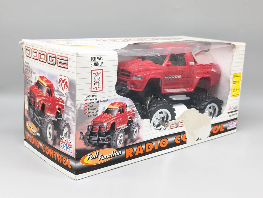 Brand:EZTECVintage:YesReplica of:Dodge4WD/2WD:UNKNOWNModel:DODGE RAM 3500 BIG REDRecommended Surface:Off-Road & On-RoadUPC:Does not applyColor:Redgtin13:Does not applyProduct Line:READY TO RUNFuel Type:ElectricType:TruckMaterial:PlasticModel Grade:Toy GradeMotor Type:Brushed