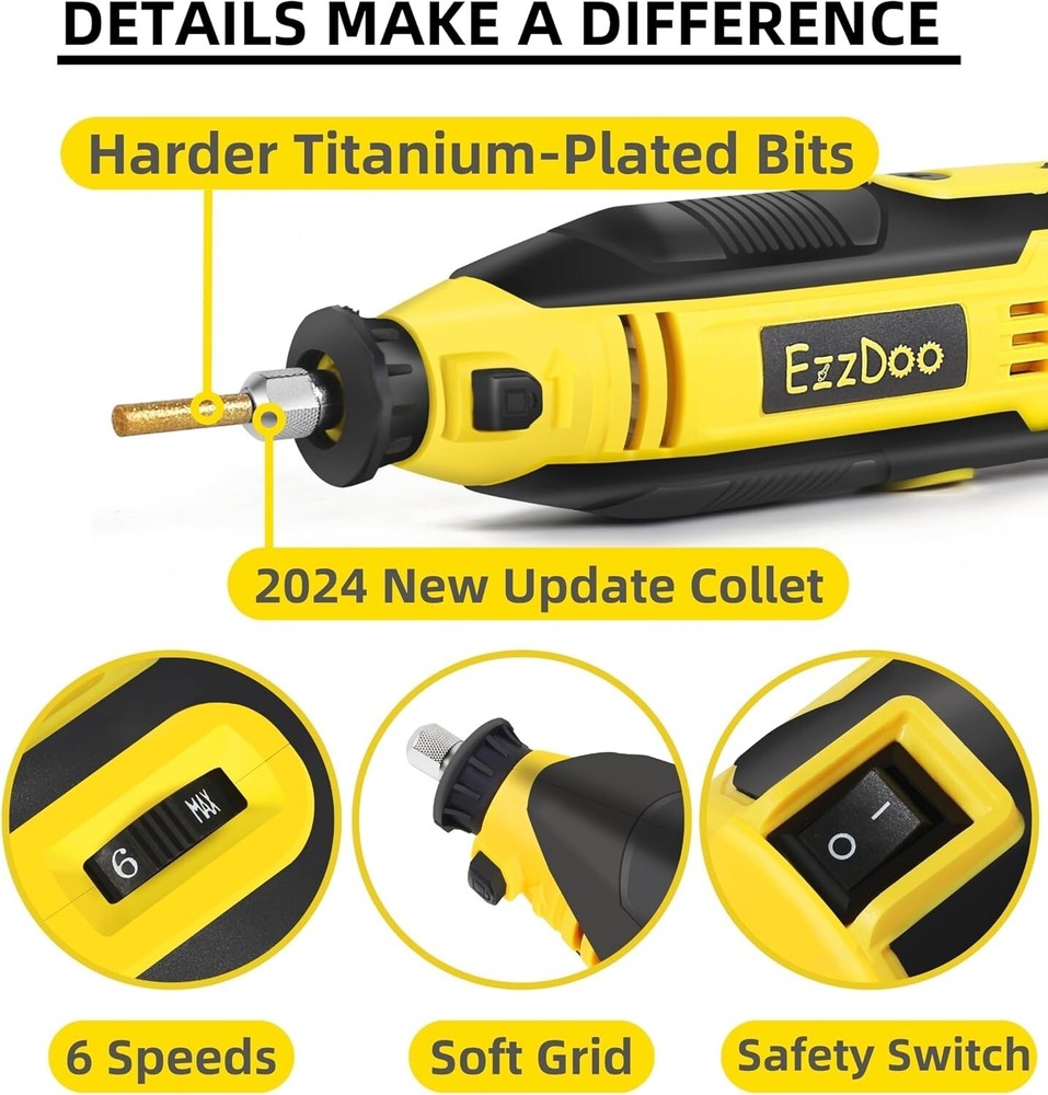 EzzDoo Electric Chainsaw Sharpener Kit with Titanium-Plated Diamond Bits for High Performance