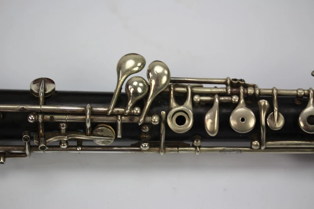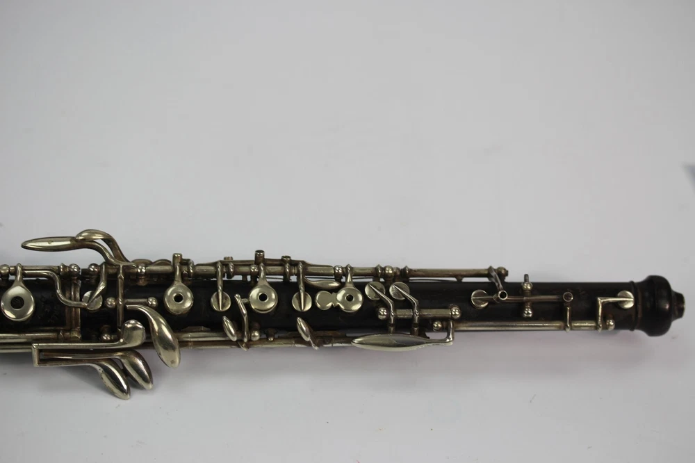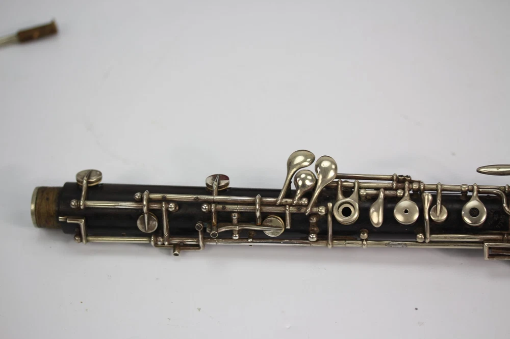 F. Loree Paris Soprano Oboe Key C SN# LL 54 Made in France This Double letter oboe was made about 1924; Please note that a few of the pictures show an english horn Bocal not included in the sale THIS INSTRUMENT WAS PURCHASED FROM THE FAMILY OF A BAND MEMBER OF DOC SEVERINSEN’S TONITE SHOW BAND FROM THE JOHNNY CARSON SHOW. HE TRAVELED ALL OVER THE WORLD AND COLLECTED HIGH END WOODWIND INSTRUMENTS. I BOUGHT THE COLLECTION. 24” Long wood end to wood end and the vintage reeds in the reed case are included. I am not a woodwinds expert so I will do my best here. We cleaned it as best we could without disassembling it. It also may need some adjustments. The pads look newer and in good shape as I show in the pictures. The cork is all good but there was some loose sewing thread I removed that the new owner may want to replace on the one tenion above the bell. While it holds well with just the cork the thread made it very snug. There is one picture you will see where I point to a spot. The metal repair in between keys on the rod and it looks like a very professional repair in the metal and is only on the top ¼ part of the rod and not around the whole rod, so it was not broken and is as strong as normal. The repair is only 3/8” long. The case is brand new and high end. It is a hard case with faux leather and a cover carry bag that the case goes in as shown. Please if you know more about this one let me know and I will share the info and if you would like to make a lower offer please email me. _________________________________________ SEE ALL OUR GUITARS ELECTRIC GUITARS VINTAGE GUITARS AMPS SYNTHS KEYBOARDS SPEAKERS’ VINTAGE STEREO MIDI EQUIPMENT HORNS WOODWINDS & OTHER MUSICAL INSTRUMENTS AS WELL AS COOL COLLECTABLES AND HARD TO FIND ITEMS AS WE LIST THEM IN OUR EBAY STORE FOR YOUR “SOUND INVESTMENTS” ALSO, YOU CAN SEE OUR STORY IN “BUCKS COUNTY MAGAZINE” UNDER SOUND INVESTMENTS USA LLC. 2021 Please see our reviews. Thanks for your interest Please note: the handling fee is for shipping insurance only and local free pickup is always welcome in N.J. ****Please see our eBay store for tons of music gear******** *****Musical instruments and equipment of all kinds******** WE SHIP WORLDWIDE FOR INTERNATIONAL SHIPPING QUOTES PLEASE DO THE FOLLOWING TO GET THE QUOTE. Sign into your account & hit “BUY IT NOW” and when the page comes up to confirm, it will show you the international shipping cost. At that point you can close out or hit confirm if the shipping cost is acceptable to proceed with sale. PLEASE email me with any questions Thank you kindly from Sound Investments USA LLC