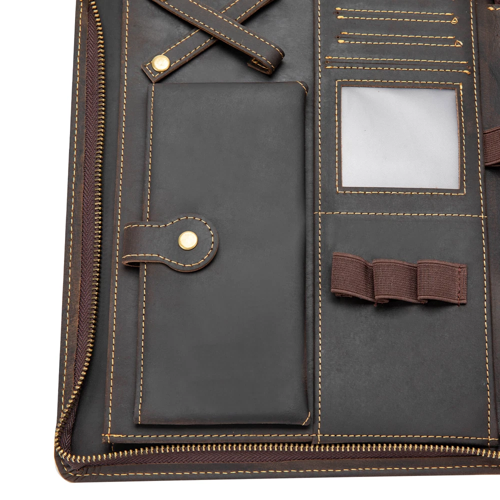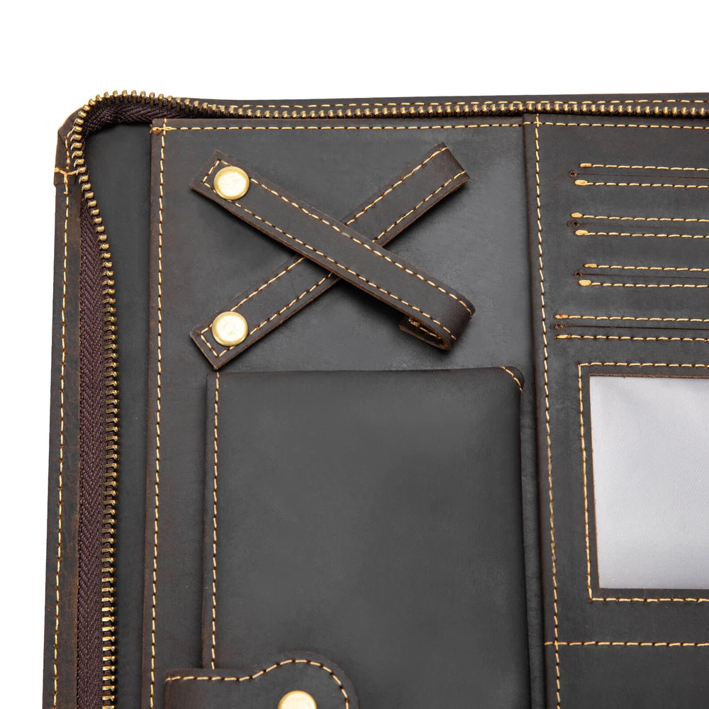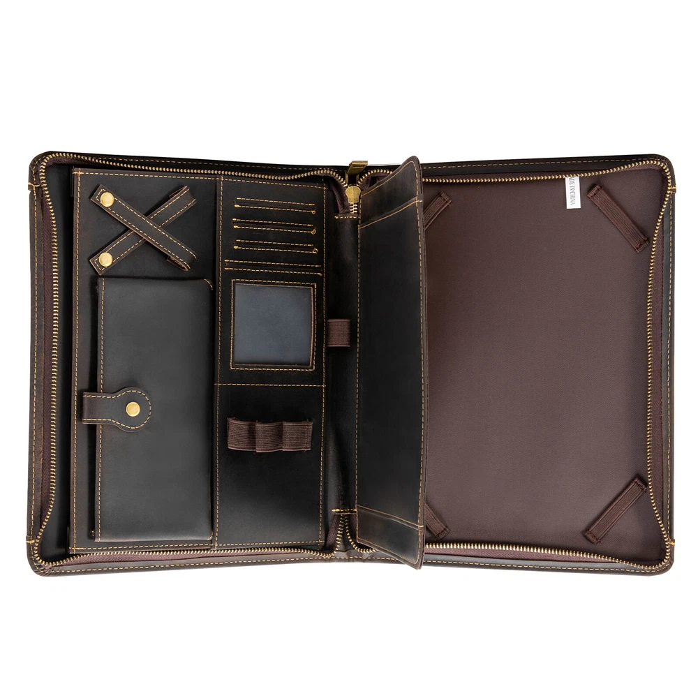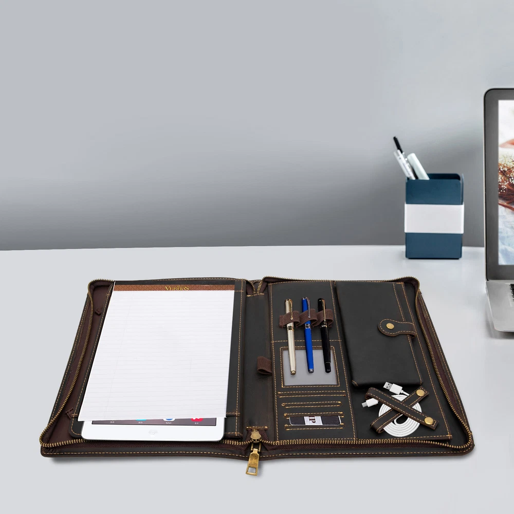 welcome Description Meetings, interviews, or classroom presentations require a lot of preparation, so we need a practical bag to organize objects. This product provides you with a great choice. Made of top-layer cowhide leather, it is very durable. And multiple compartments can facilitate the classified storage of office files, mobile phones, pens, data cables, and more. It not only makes you more confident but also gives others a good impression. Key Features Preferred Material: Made of top-layer cowhide leather, it has high toughness, good air permeability, and is comfortable to touch, allowing you to use it for a long time. Due to the natural property of leather, the appearance may change to a more mature and aged look.This aging of the leather not only makes it more flexible but also strengthens the material. You can slowly enjoy the change of texture! A Good Assistant: It can organize letters, notebooks, important documents, paper, printouts, flyers, commercial credit cards, photos, etc, and protect precious electronic products from collisions and scratches. Sorted Storage: A tablet holder with four elastic bands can accommodate 9.7-inch tablets/laptops and provide excellent fixation. Two large pockets can be used to store receipts, checkbooks, tickets, or passports. Four highly elastic pen slots can accommodate various sizes of pens, pencils, and markers. A phone bag with a buckle can be used to store your phone. The headphone holder can be used to store headphones, USB cables, and charging cables. And four card holders can store your business cards, ID cards, or credit cards. High-end Appearance: The natural texture of leather, classic brown, metal zippers, and rounded edges make the product look simple but luxurious, which can showcase your extraordinary fashion taste. Portable: It is lightweight (1.4 lbs), compact ( 11.41*0.87*1.57 inches ), and can be conveniently placed in a suitcase or briefcase, making it an excellent companion for business travel. It can also serve as a substitute for a briefcase, laptop bag, and backpack. Ideal Gift Choice: Good practicality makes it an ideal gift for colleagues, friends, or recent college graduates on Father's Day, Mother's Day, birthdays, Valentine's Day, Christmas, and other occasions. Exquisite Workmanship: Fine and neat stitching can make the product look more exquisite and extend its service life. Guaranteed Customer Service: We aim to provide quality products and services. If you have problems, please feel free to contact us. We will reply and solve the problem for you as soon as possible. Details Durable Zippers: The high-quality alloy zippers are wear-resistant, corrosion-resistant, waterproof , and can resist impact, deformation, and fracture, which can extend the service life of the product. And you can zip up the product to prevent losing items. Clear Card Window: The clear card window made of plastic cement allows you to easily see the cards inside for easy access. Application It is suitable for students or professionals to store office supplies for presentations, meetings, interviews, or daily management tasks. Specification Style Modern Color Brown Material Cowhide Leather, Alloy, Plastic Cement Shape Rectangular Compatible Devices 24cm/9.7inch Tablets/Laptops Net Weight 0.67kg/1.4lbs Gross Weight 0.8kg/1.7lbs Package Size 31*25*4cm/12*9*1.5inch Product Size 29.5*23*4cm/11.41*0.87*1.57inch Package Included 1* Leather Padfolio Folder Notes Please avoid immersing the product in water or exposing it to water for extended periods. Please avoid using sharp objects to rub the product. The top-layer cowhide has a natural texture and is prone to wrinkles, marks, spots, and creases, which is a normal phenomenon. You can repeatedly rub with your fingers, and use a dry cloth, sponge, hand cream, or leather care oil to make scratches fade or disappear. Please confirm the size of the tablet or laptop before ordering. If unsure, please measure it in time. Please allow the slight color difference caused by the shooting light and 1-3cm error due to manual measurement, and make sure you do not mind before ordering. Payment Delivery details Terms of sales About us Contact us Payment We accept ebay payment 。 Fees such as import duties, taxes are not included in the item price or shipping costs. These charges are the buyer's responsibility. Delivery details Shipping: 2-9 working days to: USA Terms of sales We maintain high standards of excellence and strive for hundred percent customer satisfaction. Feedback is very important to us. We hope that you contact us immediately before you give neutral or negative feedback, so that we can address your concerns. It is impossible to address issues if we do not know about them! About us Your satis faction is our ultimate goal. We work hard to earn your trust and future business. Our certified technicians have tested each item before shipping. The unit comes with 1 year limited warranty on all manufacturing defects. a) If you receive a defective item, you may return it or ask for a discount. Please contact us within 14 days after you receive the package. b) What you returned must be intact and in its original packaging as re? u. Customer is responsible for shipping costs of the returned item. c) We will cover the cost of shipping back t with the shipping rate indicated in the registration page. We will send you a new unit or refund the full payment you paid. Thank you. Contact us Business Hour Business Hour: Monday To Friday: 8:30 AM to 5:00 PM (Beijing China time) Due to time zones, our reply to your questions may not be immediately. But within above working time, we will reply your email within 24 hours. If it's non-workdays, please kindly be patient and wait till Monday. Please contact us with ebay message. Please feel free to contact us if you have any questions. Monday To Friday: 8:30 AM to 5:00 PM (Beijing China time) Due to time zones, our reply to your questions may not be immediately. But withi