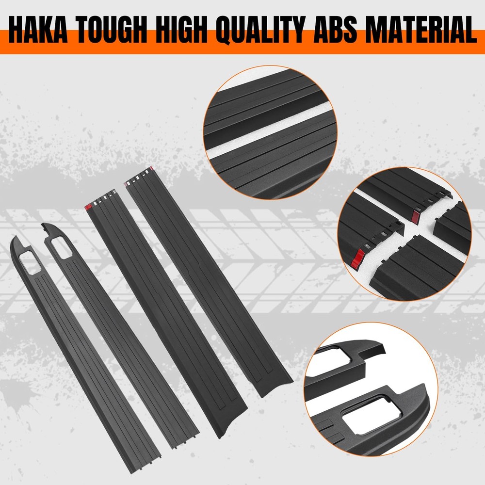 Fitment: for 2015-2020 F-ord F150 Perfect Fit: trunk bed rail caps are designed for F-ord F150 with 5'5" Bed 2015-2020. These bed rail covers come with Stake Holes.Replacement #FL3Z-84291A40-AA, #FL3Z-84291A41-AA Durable & Robust Material: Constructed from thickened high-quality PP plastic, our bed rail covers for F150 offer superior wear resistance, high hardness, ensuring they remain intact against cracking, deformation, and weather elements. Sleek Aesthetics: Featuring a smooth, black matte texture that resists scratches and dust, these bed rail caps for F-ord F150 enhance your truck’s appearance by replacing old, damaged, or worn-out factory side rails, blending aesthetics with functionality. Enhanced Protection: Guard the edges of your truck bed against impacts and scrapes with these sturdy trunk side rail caps for F-150. Their robust design not only protects but also gives your F150 a polished, new look, making it stand out. Effortless Installation: Engineered for a factory-tight fit, bed rail protectors perfectly align with your vehicle's dimensions to ensure a seamless fit without gaps, without any need for drilling or modifications.