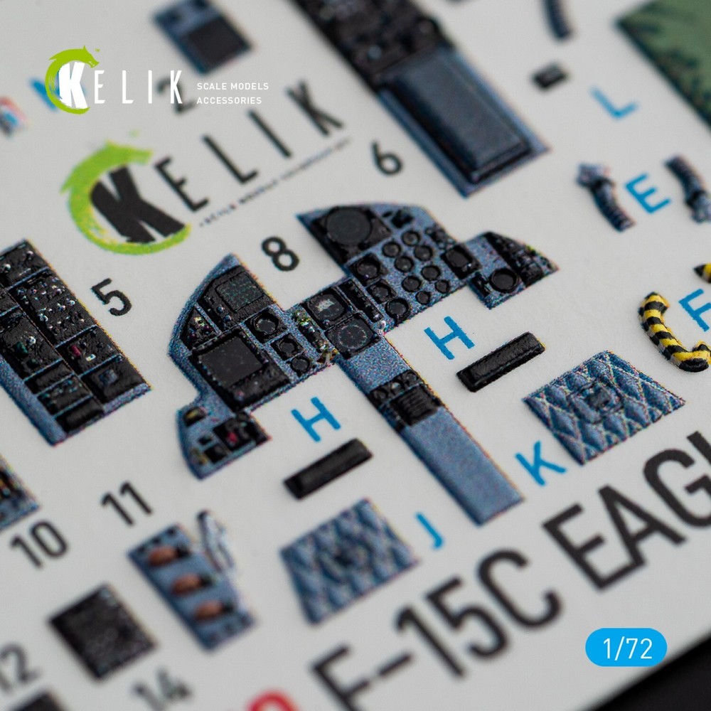 F-15C Strike Eagle interior 3D decals for Hasegawa kit Scale 1:72 KeliK K72072 - For Plastic Model Kit High quality, easy to apply, add realism and detail to your model. Scale: 1:72 Manufacturer: KeliK (Ukraine) Country/Region of Manufacture: Ukraine Condition: New in Box Features: Kit Category: 3D Decals Type of equipment: Aircraft Recommended kit: Hasegawa kit (F-15C STRIKE EAGLE) ---------------------------- Scale model accessories are a wide range of parts, spares, and components that can help you make your model even more realistic and detailed. In our catalog, you will find everything you need to assemble and repair model cars, airplanes, ships, tanks, and weapons. Our accessories are made from high-quality materials and meet all standards. We offer a wide range of models and sizes so you can find what you need. Buy scale model accessories in our store and make your model even more unique!