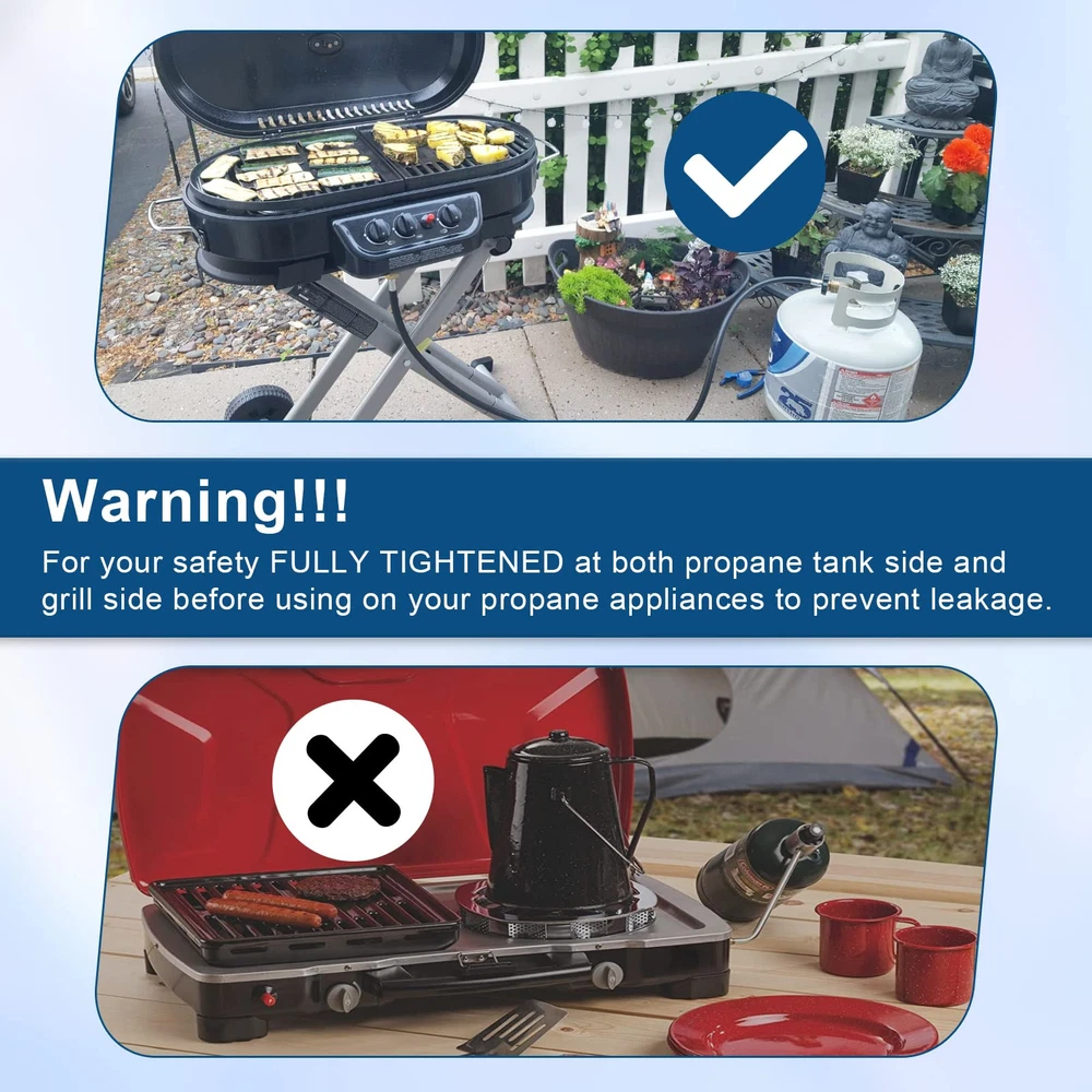 Propane Adapter Hose Compatibility: F273704 propane hose fit for Mr. Heater Mr Buddy series, 12-foot propane hose with adapter fittings assembly with Mr.Heater MH9B Portable Buddy and MH18B Big Buddy,Blackstone griddle,Coleman camping stove and more. Propane hose adapter 1lb to 20lb",and with more heater equipment and propane tanks Propane Tank Hose Adapter: for Mr Heater adapter hoses parts are widely used for 1 lb propane tanks to 5-20 lb propane tanks and equipment,also available for more types of propane tanks,ideal for lanterns, gas grills, heaters, cookers, camping stoves,and fire pit tables,portable grills,camping,tailgating,tabletop grills,heating or outdoor picnics and more propane equipment,and so on Easy to Install: POL connection attaches directly to propane tank without needing any tools. The end swivels of the hose are easily tightened by hand, simply hand-tighten the swivel ends to secure it, can be directly connected onto the RV’s low-pressure propane supply, make sure both ends are tightened for safe and reliable usage Safe and Reliable: heater adapter hose is CSA certified as safe and reliable, provide a safe, gas-tight connection between the heater and the tank with no gas leakage to ensure the safety of users of the heater, no regulator or gas problems, and the airflow is kept stable and at an appropriate level Excellent Material: 12-ft propane stove hose extension is made of high-quality rubber, leak-proof, explosion-proof, wear-resistant, corrosion-resistant; Propane stove adapter hose connector sections crafted from solid brass, provides secure connection between appliance and tank, durability, and safe, leak-free operation Please Note: This is a non-OEM product. Any use of brand names or model designations for this product is made solely for demonstrating compatibility. We will resolve your hose questions as soon as possible and want to ensure that each customer has a great experience