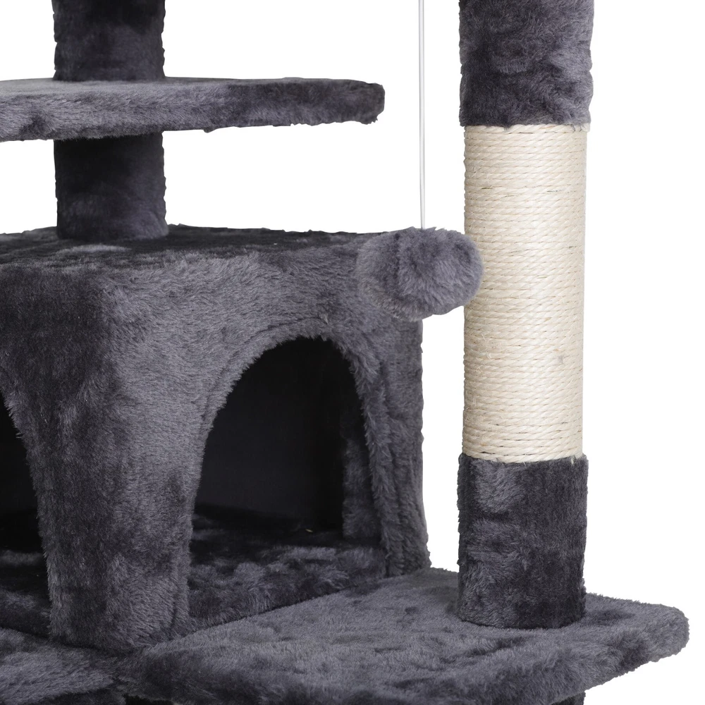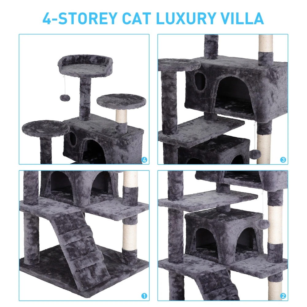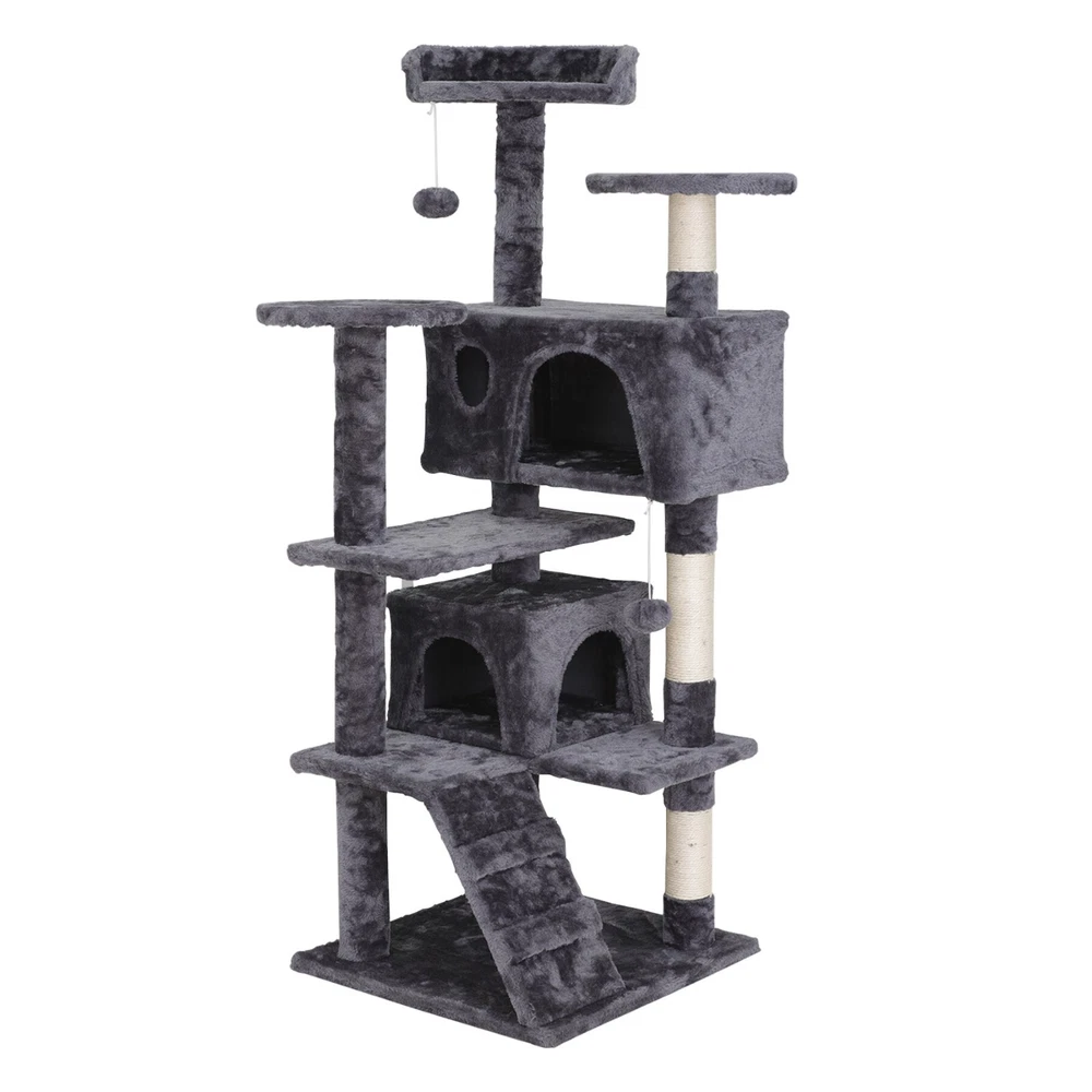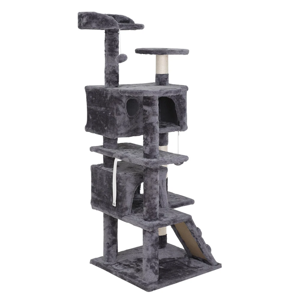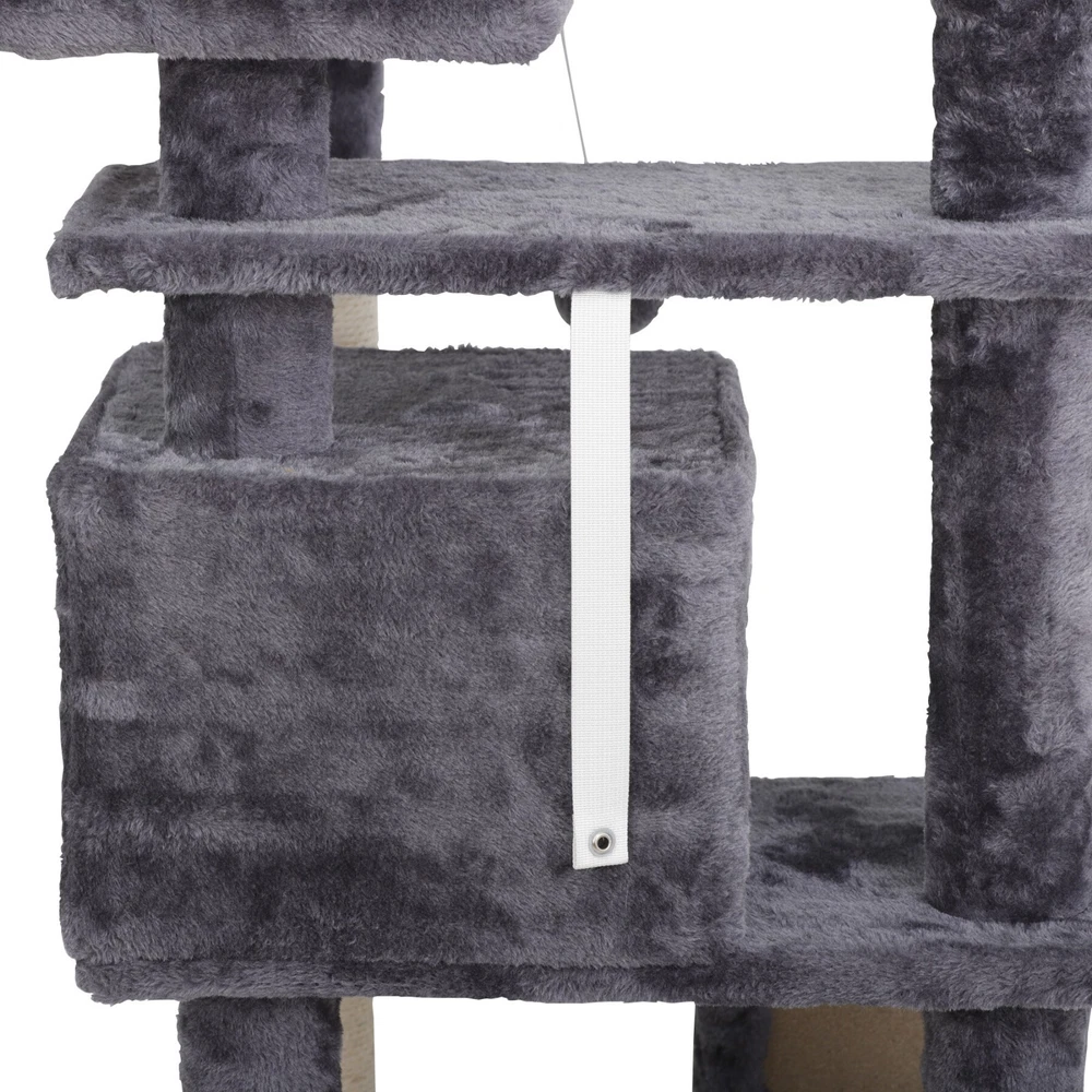 [FALSH SALE]HomGarden 55''H Multi-Level Soft Cat Tree Condo Cat Tower WScratching Posts & Top Perch, Gray About this item Roomy & Cozy Cat Condo: All-day snoozes are part of your cat's daily routine. 2 spacious room offer soft and warm lounging spots, perfect to curl up for snoozing. Multi-Level for Playtime: The ladder provides plenty of space for your cats to climb up and down and adds an extra element of fun. Your frisky cats can jump from perch to perch and climb to the top of the lookout tower. Dangling ball and rope toys offer a fun-filled, stimulating playtime. No More Scratch: Multiple scratching posts are wrapped in natural sisal rope to hold up to daily scratching with one or more cats. Scratching ramp connects at two points to increase stability as well as prevent your cats from scratching your furniture. Durable & Soft Cat Condo: The board is made of grade P2 particleboard certified by CARB, and a soft & skin-friendly plush fabric covering for maximum comfort during naptime. Added Safety: Our cat tree aims to offer a safe, sturdy, and stable home and entertaining center for your feline friends. The bottom base is strengthened with battens to ensure its stability. Moreover, you can secure the tower to the wall with the included anti-tip kit for double safety. Easy To Assemble: Comes with detailed instructions for quick and easy installation, all the hardware and tools are included. Big Room: 19.5'' L x 10.6'' W x 9.44'' H | Small Room: 11'' L x 11'' W x 8.5’’H | Max Load Capacity up to 44lbs. Beautiful appearance will add luster to any room in your home. Specifications: Color: Black Gray Net Weight: 30.75lbs Max. Load: 44lbs Material: Particleboard & Plush & Sisal Small Room: 11'' L x 11'' W x 8.5’’H Big Room: 19.5'' L x 10.6'' W x 9.44'' H Overall Dimension: 25.6'' L x 26'' W x 55'' H Warm note: It is recommend for Small and Medium sized cats rather than large cats. Please check the size before purchasing. For Big Orange Cat, it shouldn't be more than 2. For other medium cats, it could hold no more than 4. This cat tree doesn't work for Maine coon. Specifications Features Multi-Level Brand HomGarden Animal Type Cat Color Gray Manufacturer Part Number P01-3382-G2 Manufacturer HomGarden Assembled Product Weight 30.75 lb Assembled Product Dimensions (L x W x H) 25.60 x 26.00 x 55.00 Inches