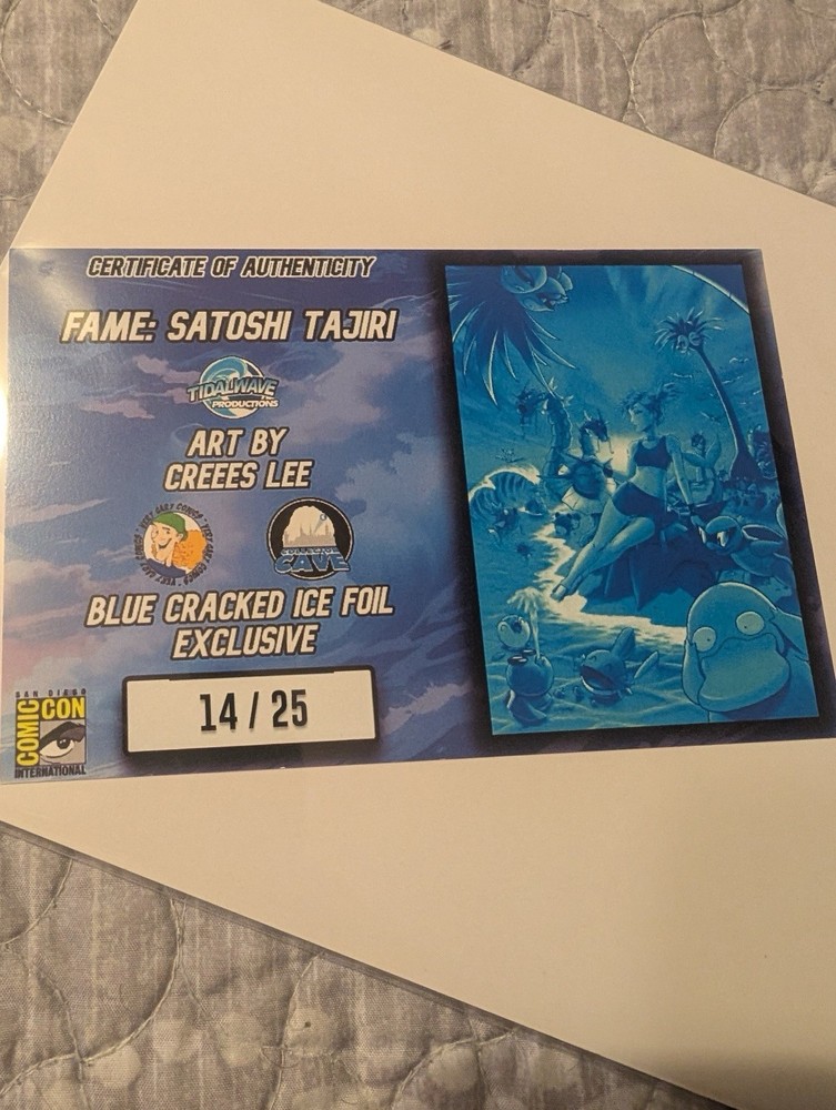 The FAME SATOSHI TAJIRI "MISTY" CREEES LEE SDCC EXCLUSIVE LTD 14/25 Blue Cracked Ice comic book is a limited edition single issue featuring the character Misty from the Fame series. The comic is written by Creees Lee and published in English in the United States. As a part of the Modern Age era of US Comics, this collectible item is a must-have for fans of the Fame series, boasting a unique Blue Cracked Ice design that sets it apart from other releases. Check pictures for book condition. Thanks