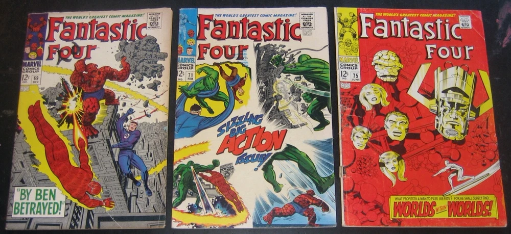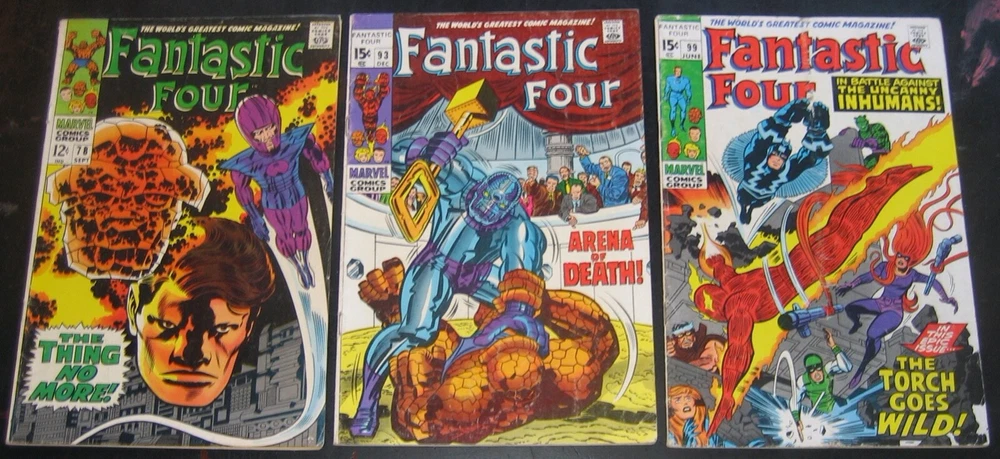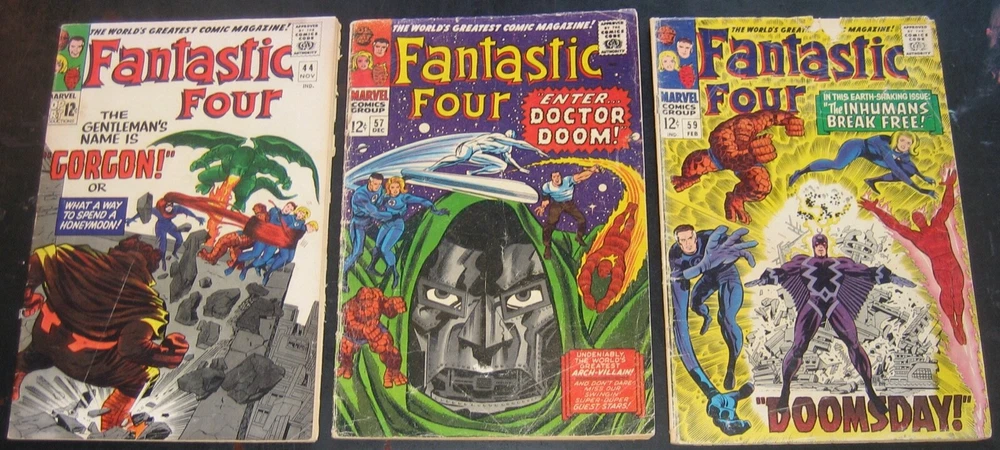 A great lot of 18 Fantastic Four! This is a lower grade lot. Some great books in here with the first Gorgon and plenty of Dr. Doom! Christmas is coming and this would make a great gift for a kid starting to collect comics! Or, maybe for yourself? A penny open, no reserve and free shipping! Payment is required within 24 hours of auction end or my invoice or auction will be canceled and lot will be re-listed. Please ask any questions if you have them and I will be happy to answer them. You will receive the exact same item you see in the scans. I also know how to ship and all items are packed like I was shipping them to myself. Check out Nostomania for all your comic book pricing and collection management needs! All values represented are based on actual sales in both raw grades as well as all three grading services.