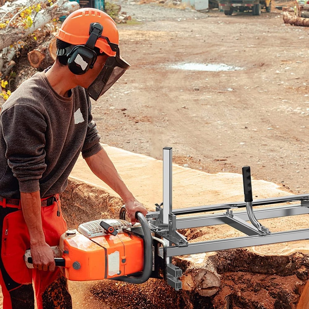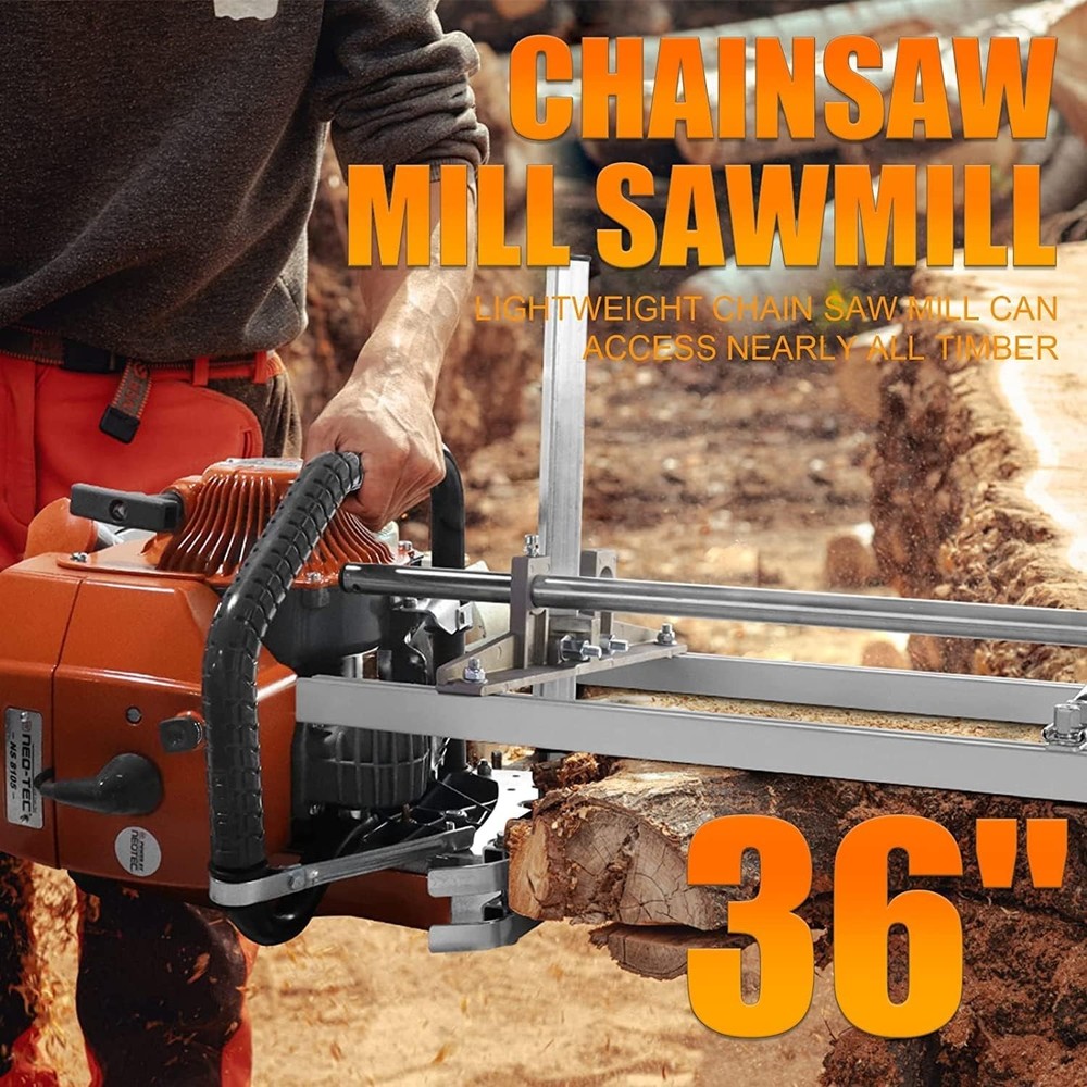 FARMMAC Chainsaw-Mill-Portable-Saw-Mill - 36 Inch Chainsaw Mill Kit Planking Milling, Gas Powered 【Large cutting capacity】The 36-inch chainsaw mill allow you to mill large logs and create custom-sized lumber for 14''-36'' projects, giving you the flexibility to tackle bigger woodworking jobs. 【High-quality materials】The chainsaw mill is constructed with high-quality materials, making it sturdy and long-lasting. This can ensure that the product can withstand heavy use and last for many years with proper maintenance. 【Precise cutting】With a large cutting capacity, the chainsaw mill allows for precise and even cuts, giving you a professional-grade finish on your lumber. 【Portability】Despite their large sizes, the chainsaw mill is still portable and can be transported to different locations easily. This feature allows you to mill logs right where they are felled, saving time and energy. 【Excellent after-sales guarantee】Our company provides an excellent after-sales guarantee. If any problems arise with the product, you can contact us at any time, and we will do everything possible to help you resolve the issue.