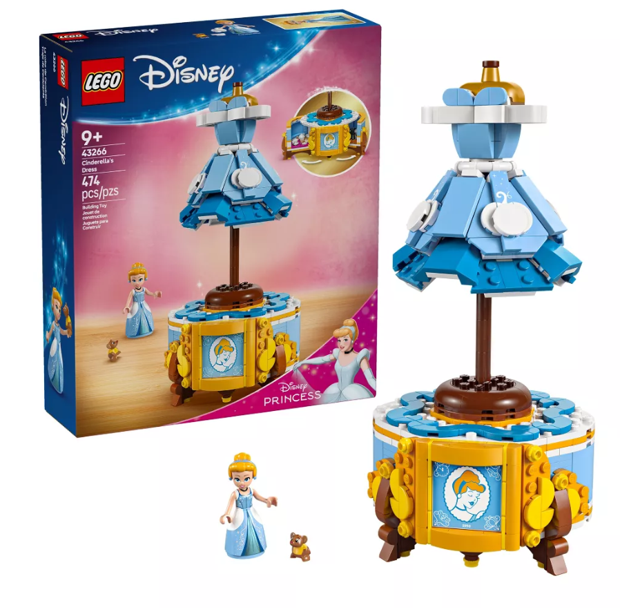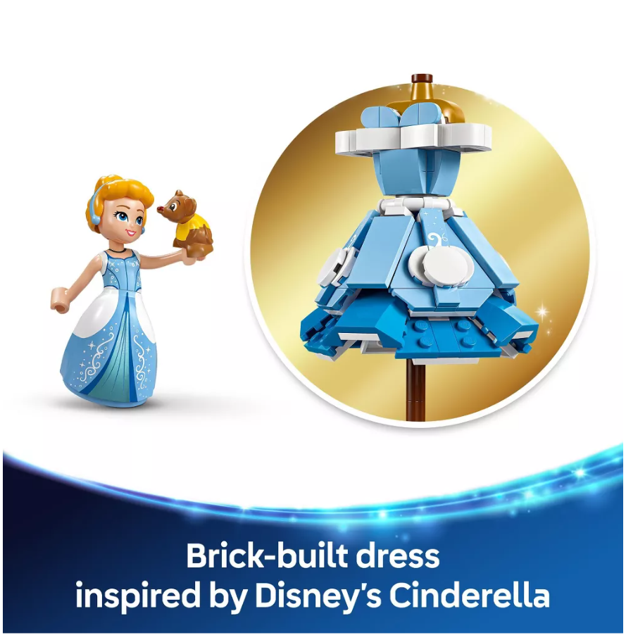 Item Width: 5.5 in LEGO Subtheme: Cinderella / Disney Princess Fashion LEGO Set Name: Cinderella’s Dress Packaging: Box Number of Pieces: 477 Pieces Features: Rotating Stand, Hidden Compartments, Decorative Base, Authentic Movie Details, Includes Mini-doll, Collectible, Display-Ready Age Level: 9+ Interests: Buildings, Fantasy, Movies, Princesses, Disney, Fashion, Interior Design/Decor Brand: LEGO Year Manufactured: 2025 LEGO Character: Cinderella Country of Origin: Denmark Type: Complete Set Item Length: 5.5 in Item Height: 11 in LEGO Theme: Disney Princess Retired: No Release Year: 2025 Material: Plastic LEGO Set Number: 43266