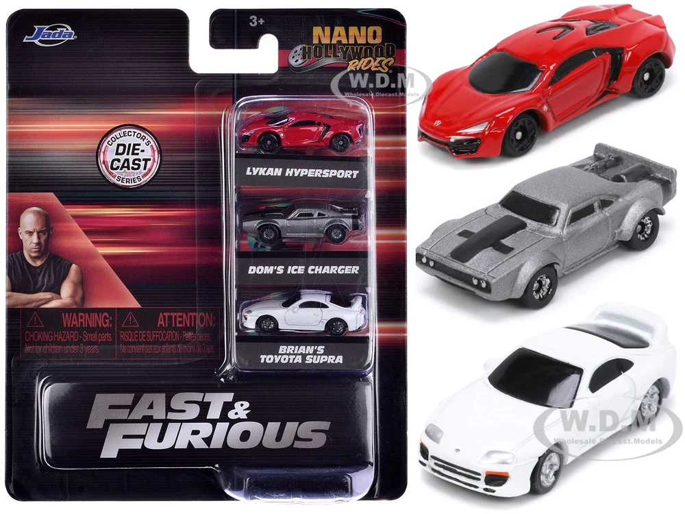 SAVE WHEN BUYING MORE!!! Buy as many items as you wish and we will ship them for one low shipping cost to 48 continental U.S. states physical addresses. Example: Shipping cost for most 1/24 scale items is $10, for 1/18 scale items is $12. If you use Add to cart button and purchase 5 items in 1/24 scale and 5 items in 1/18 scale, your shipping cost will be only $12 for 10 items. In order to request combined shipping for signed in desktop users: Please use Add to cart button for desired items, click Go to cart button and press Request total from us before paying and we will send combined shipping invoice shortly. If checking out as a Guest or using a mobile version, please use Add to cart button then click Go to cart button , press Go to checkout button, request extra shipping refund in Message to seller section and finalize payment by pressing Confirm and pay button. We will refund extra shipping cost shortly. DESCRIPTION: Brand new diecast car models of "Fast & Furious" Movie 3 piece Set Series 4 "Nano Hollywood Rides" die cast model cars by Jada. Brand new box. Detailed exteriors. Comes in a blister pack. Officially licensed product. Made of diecast with some plastic parts. Dimensions of each model is approximately L-1.65 inches long. THIS SET INCLUDES FOLLOWING MODELS: 1) Lykan Hypersport Red. 2) Brian's Toyota Supra White. 3) Dom's Ice Charger Gray with Black Stripes. PAYMENT INSTRUCTIONS: We gladly accept paypal. Tracking info is free upon request. SHIPPING INFO: We do combine shipping cost for two or more items purchased. Please check shipping and payment section. In order to receive combined invoice for multiple purchases, please purchase items and let us know when you are done shopping, so we can send you one combined invoice. We can only combine shipping cost if items paid in one transaction. Dear Valued Customer! We appreciate your business. BUY WITH CONFIDENCE Fast Order Fulfillment 99% of orders are shipped within 24 hours or sooner. Simple Return Policy Thirty days simple returns. More than 10 Years of Experience Family owned and operated, we’ve had the experience of selling online for more than 10 years. Satisfaction Guaranteed! Our feedback says it all. And now, we hope to have the chance to prove we are the best to you! Competitive Pricing and Unrivaled Selection We are the number one direct distributor of diecast model cars in the USA, so we are able to provide very competitive pricing. Our stock selection is unrivaled with over 4,500 different items. Quality Shipping & Handling We package all our orders with care using bubble wrap to protect models from damage in transit. Each model that has a fragile window box is covered with carton protection. Excellent Customer Service Our customer service is second to none with thousands of returning, satisfied customers from all over the world.