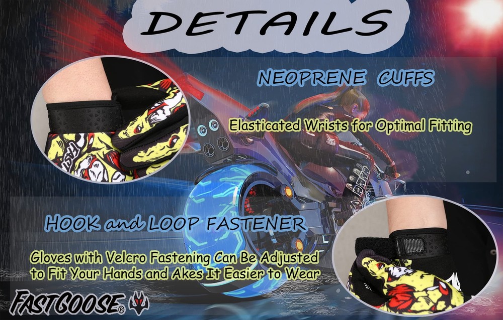 FASTGOOSE Gloves are tough built for a long term use,It will bring you a new perception, Ideal for ATV UTV motocross motorbike dirt bike,Suitable for multipurpose usage, outdoor sport,bicycling, motorcycling, climbing,Hunting etc 【Breathable & Comfortable 】The motorcycle gloves is made of the polyester,microfiber as well as the breathable hole on the fingers and palm. which can increase airflow circulation throughout your fingers so they don’t get sweaty. Also the cuff is stretchy,making the gloves fit your hands. 【Excellent Grip - Non-slip】Non-slip microfiber is used on the palm and all over the fingers. It increases the grip on motorcycle handlebars to improve driving safety. 【Screen Touch Friendly】The index finger and thumb of the gloves is equipped with the microfiber material,which is with the screen touch function. You can use your phone or adjust the navigator easily and don't need to take off gloves. 【ALL-PURPOSE】Ideal for BMX ATV MTB riding, road racing, cycling, shooting training, air pistol, powersports, motocross, climbing, skating, mountaineering, dirt bike,and many other fields. 【Measurement】Please refer to the sizing guide in pictures for optimal sizing.