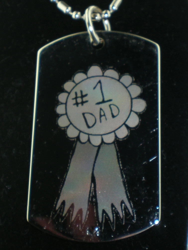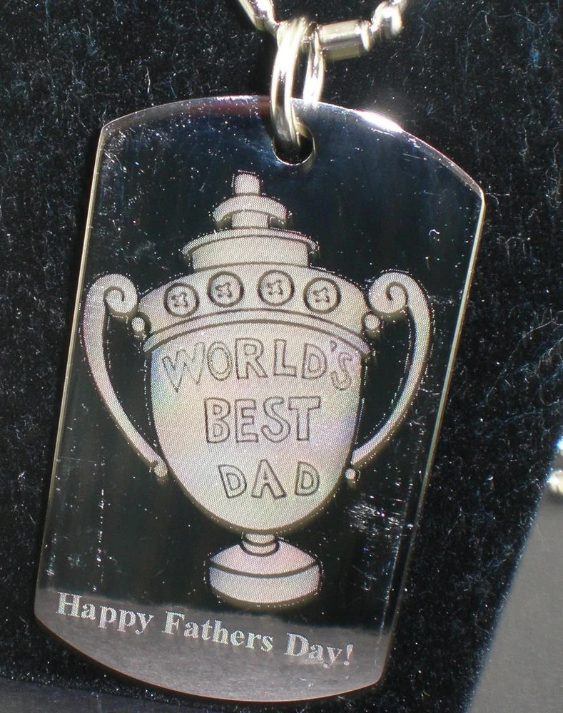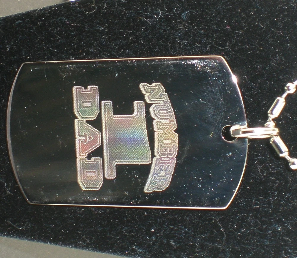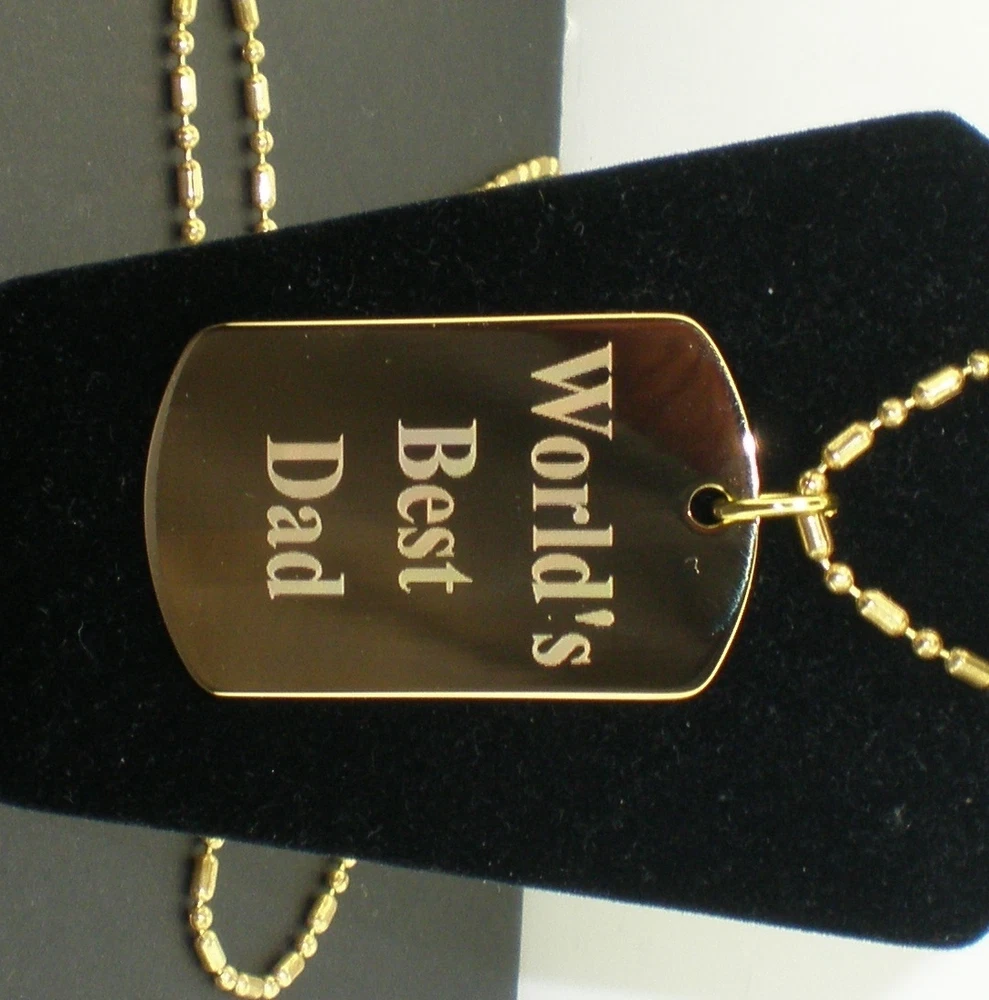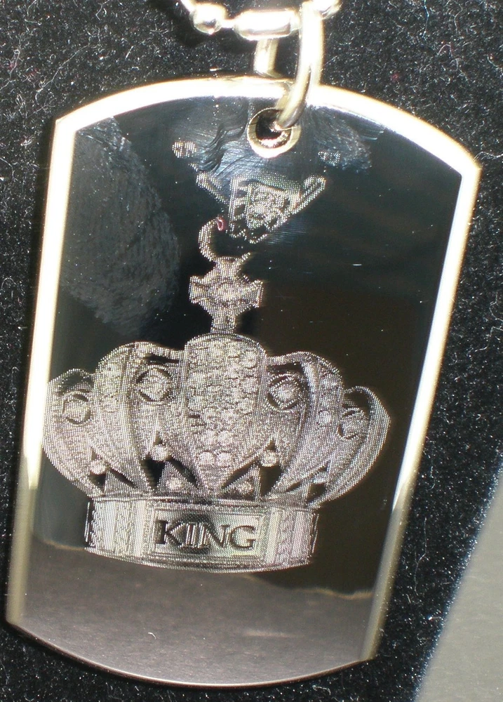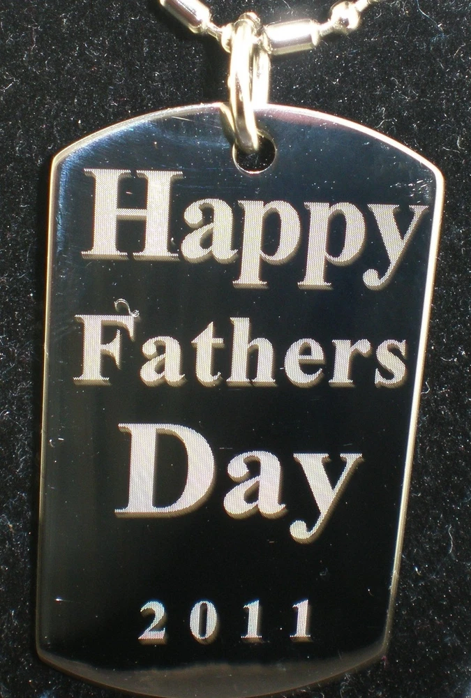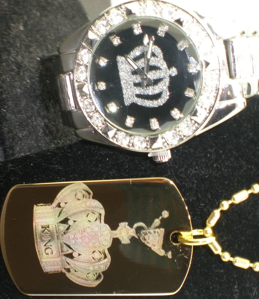 Have Father's Day Special with this elegant symbolic Watch and a superb two side engraved Dog Tag which will surprize him and make him Happy on this great Ocassion!!! DOG TAG : You are bidding on a high quality 2T (2.1mm thick) rhodium plated (silver tone ) or gold plated (gold tone) photo dog tag. Please note item is NOT black in color. There are two images actually engraved, on one tag. One on each side of the tag, so you get a high quality image that is embedded into one dog tag with two different pictures. As in the picture, two side engraved Dog tag, one side is engraved with "# 1 Dad... and the other side is engraved with a Kings Crown Logo, comes with the Beautiful Watch. You can select any other Fathers Day Tag by sending us the request at the time of purchasing. The image does not fade or peel, and lasts for the life of the pendant. The engraved picture is like a hologram on the shiny surface so you have to turn it to the light to see the engraved image as sold in your local mall. I did this for over three years at the local mall. I personally engrave each tag and get a lot of job satisfaction, and rest assured that I provide you with my best work Each 29mm by 50mm pendant comes with A FREE sausage chain which is at least 30 inches long (easily cut down with a pair of scissors)* A FREE glossy silver color gift box WATCH MATERIAL : Rhodium Plated for silver look or 24k Gold tone for gold look, with full CZ all over the silver or goldtone dial or rhodium plated black for Gun metal metal look. It is a quality Timepiece with colorful logo/emblem inside the glass, which simply looks fantastic on a wrist!!! Watch Band: Width: Approximately .75 Inch wide Watch Face: Approximately 1.05 inch wide approximately with sparkling cz inside and all over the dial surface. Watch Length: Approximately 7 - 8 inches long approximately with adjustable Band. Beautiful watch with monogramme logo embedded inside the face and all over the metal Band which is easily adjustable on a wrist by removing extra links at a repair shop. This watch has a Stainless Steel Back Accurate Japanese Quartz Movement inside the watch. FAST SHIPPING within 24 HOURS of receiving a cleared payment.