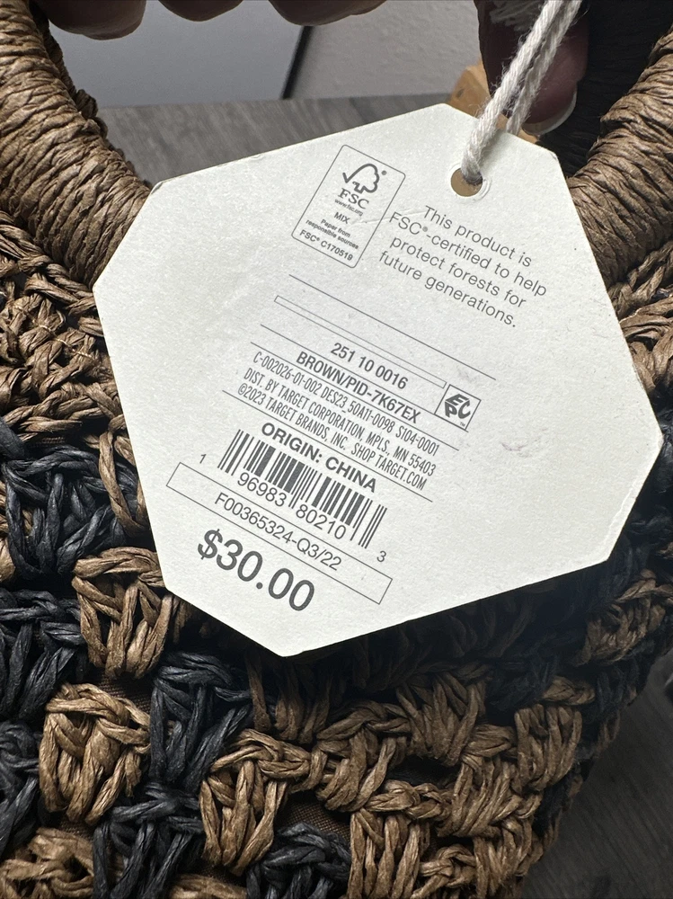 FE NOEL for Target Black and Brown Straw Lined Mini Tote Handbag New With Tags MSRP $30 Payment is due with accepted offer or buy now Brand Card in accessories = original tags Shipped with USPS Select Ground or Priority or First Class depending on final weight Serious offers only please and thank you -low offers will decline automatically Sold as a final sale Please view all 12 photos Read the specifics and descriptions Item is shipped as described If you need additional information or measurements about this item please message me through the listing before purchasing Sold as is and a final sale I do not accept returns due to size, fit, colors, buyers remorse, etc. Thanks for visiting my eBay store International shipping costs are the buyers responsibility and I only ship through the eBay global shipping program Shipping costs are not refundable and a 20% restocking fee applies if a case opens up for a refund This is a final sale Absolutely no returns accepted Thanks for looking 🙂 Please make sure that your address is updated and correct before purchasing