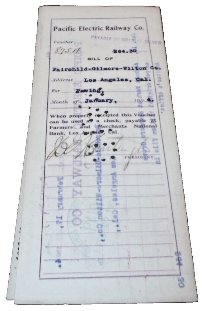 Pacific Electric Railway voucher from February 1904. Very good condition.