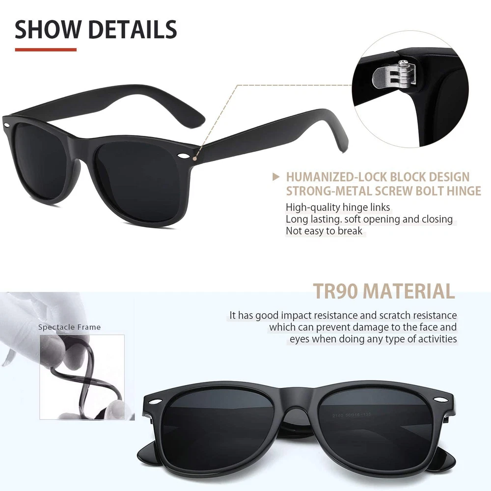FEIDUSUN Sunglasses Men Polarized Sunglasses for Mens and Womens,Black Retro Su Features: CLASSIC SQUARE FRAME DESIGN: Polarized sunglasses men women are designed with retro square elements and are always favored by trendsetters. FEIDUSUN sun glasses polarized is excellent choice for you at any outdoor activities such as driving, fishing, hiking, cycling or any water sports to wear UV 400 PROTECTION: These men's sunglasses come with UV protection TAC lenses that block 100% of UVA and UVB rays. UV400 sunglasses are necessary to protect your eyes from long-term UV damage and keep your eyes healthy during leisure activities.Whether it's cloudy sunny, UV square sunglasses are an essential shield to protect your health MOVE FREE AND FEEL FREE: Because of the lightweight yet strong special material construction, they are lighter, more flexible and more durable than other sunglasses womens, reducing pressure on the nose and ears.Wearing women's sunglasses has never been more relaxing, secure and comfortable than now HD PROTECTION LENS: FEIDUSUN anti glare HD polarized retro sunglasses can effectively reduce the glare reflected from roads, water bodies, snow, and other water surfaces, restoring true colors and improving visual comfort.Eliminate reflected light and scattered light and protect eyes perfectly. Wearing black sunglasses for women has never been more relaxing, secure and comfortable than now CUSTOMER SERVICE: All FEIDUSUN customers will enjoy complete customer service for our polarized womens sunglasses. The quality of each product is double checked by a third party company.And it's lifetime support! If you have any questions, please feel free to contact us Features: CLASSIC SQUARE FRAME DESIGN: Polarized sunglasses men women are designed with retro square elements and are always favored by trendsetters. FEIDUSUN sun glasses polarized is excellent choice for you at any outdoor activities such as driving, fishing, hiking, cycling or any water sports to wear UV 400 PROTECTION: These men's sunglasses come with UV protection TAC lenses that block 100% of UVA and UVB rays. UV400 sunglasses are necessary to protect your eyes from long-term UV damage and keep your eyes healthy during leisure activities.Whether it's cloudy sunny, UV square sunglasses are an essential shield to protect your health MOVE FREE AND FEEL FREE: Because of the lightweight yet strong special material construction, they are lighter, more flexible and more durable than other sunglasses womens, reducing pressure on the nose and ears.Wearing women's sunglasses has never been more relaxing, secure and comfortable than now HD PROTECTION LENS: FEIDUSUN anti glare HD polarized retro sunglasses can effectively reduce the glare reflected from roads, water bodies, snow, and other water surfaces, restoring true colors and improving visual comfort.Eliminate reflected light and scattered light and protect eyes perfectly. Wearing black sunglasses for women has never been more relaxing, secure and comfortable than now CUSTOMER SERVICE: All FEIDUSUN customers will enjoy complete customer service for our polarized womens sunglasses. The quality of each product is double checked by a third party company.And it's lifetime support! If you have any questions, please feel free to contact us eBay integration by
