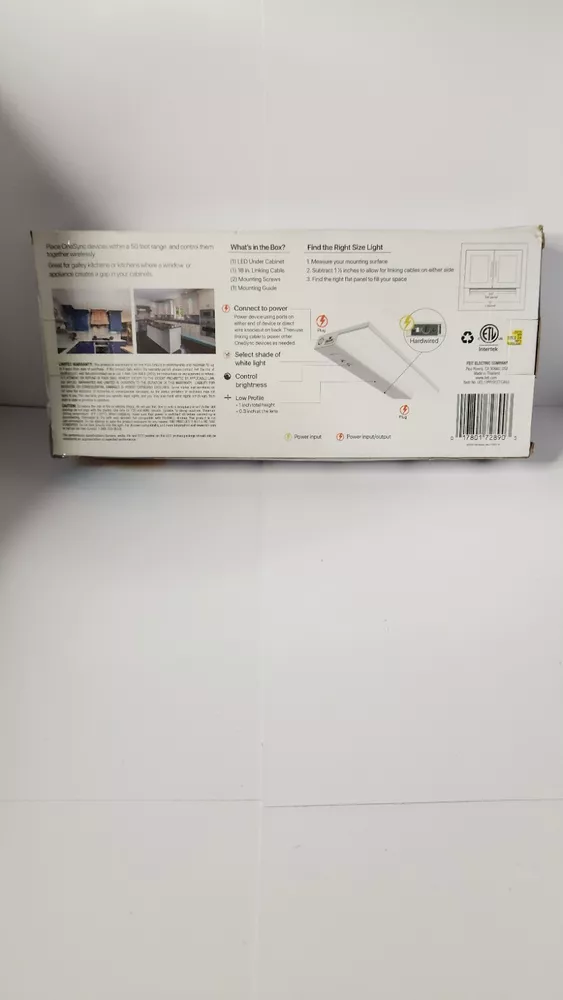 OPEN BOX ( LIGHT ONLY ) Brighten up your under cabinet with this Feit Electric Onesync LED light. The 9.5" LENGTH light is designed for easy installation and features a low profile design that fits seamlessly under your cabinet. The white color of the light adds a modern touch to any kitchen or workspace.