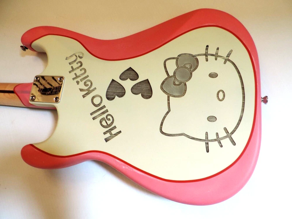 Please note : Guitar ships within 20 Business Days. Custom Fender Stratocaster Hello Kitty Special Customized Strat. Customized by DelDuca Custom Classics , in Sugar Hill , Georgia.. Fender vintage 70's re issue Pickups, 5 way switchin g. Hand Engraved in the Wood, No Stickers or Decals . Hand Engraved Pickguard. Guitar Only As Shown. Please take The time To See All Pictures As they Are Part Of The Description Sold as Is and As Shown. No returns. Paypal. PLEASE NOTE , GUITAR SHIPS WITHIN 20 BUSINESS DAYS Worldwide Shipping.
