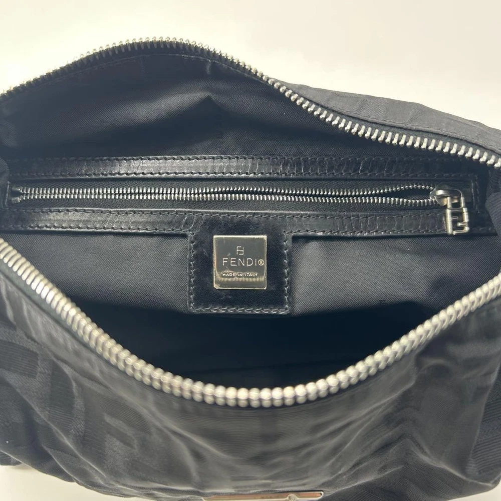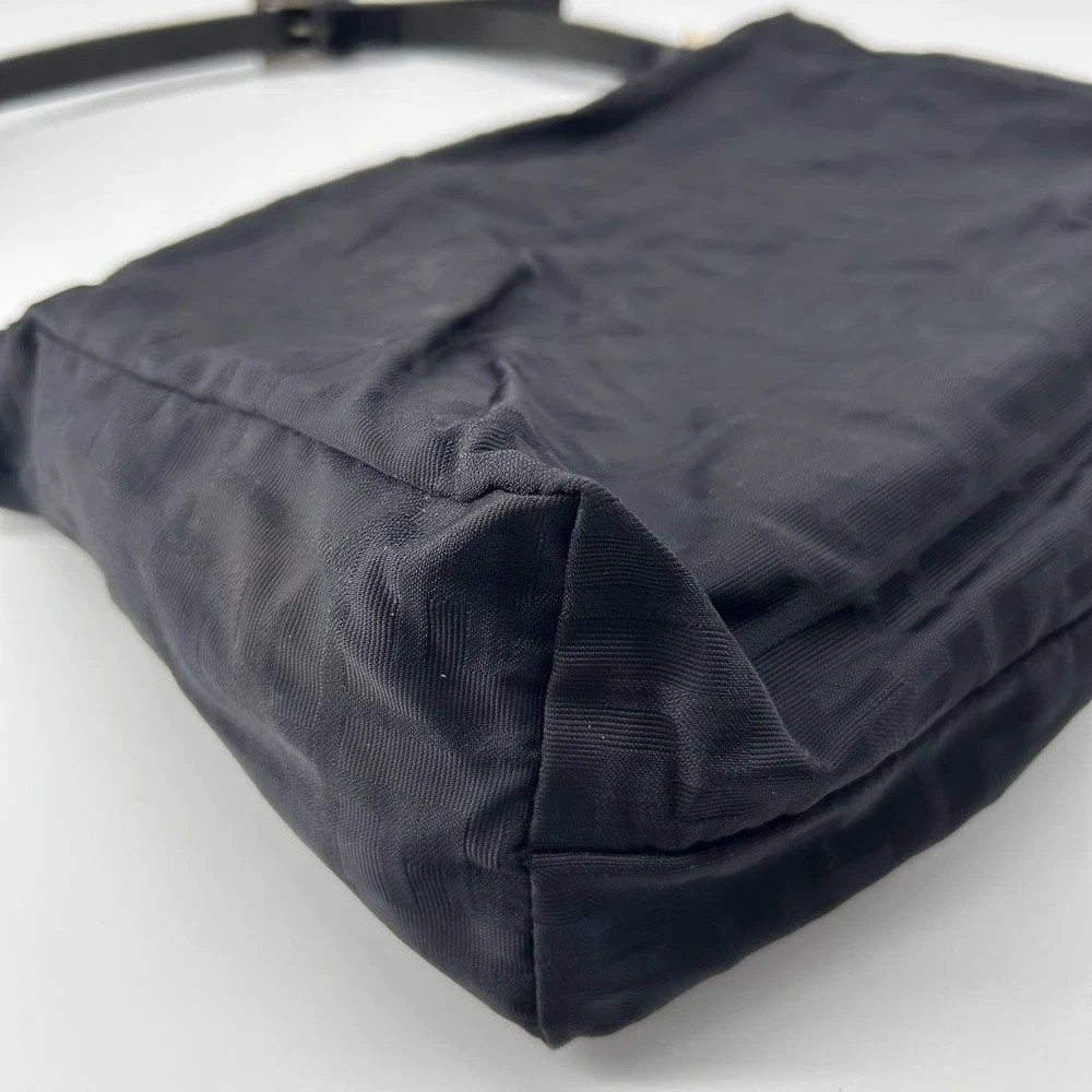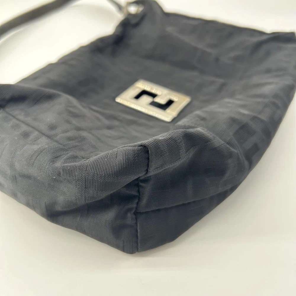 FENDI Black Canvas Zucca FF Shoulder Bag with Hardware I060251 Authentic