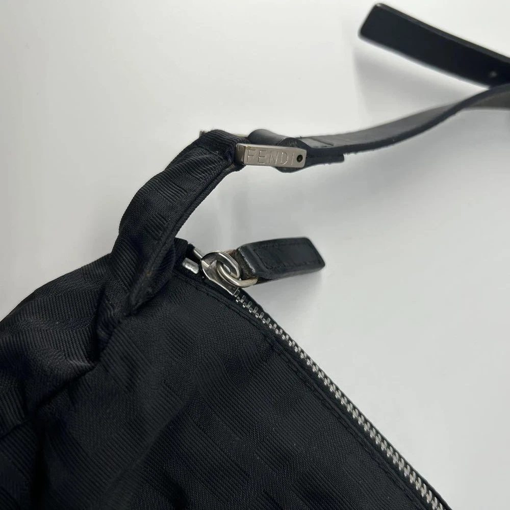 Product Line: NA Closure: NA Exterior Material: Canvas Lining Color: NA UPC: Does Not Apply Exterior Color: Black Character: NA gtin13: Does Not Apply Style: Shoulder Bag Accessories: NA Handle/Strap Color: NA Brand: Fendi Bag Depth: See Description Bag Height: See Description Size: See description Customized: No Handle/Strap Material: NA Vintage: NA Pattern: NA Lining Material: NA Department: Women Hardware Color: NA Bag Width: See Description