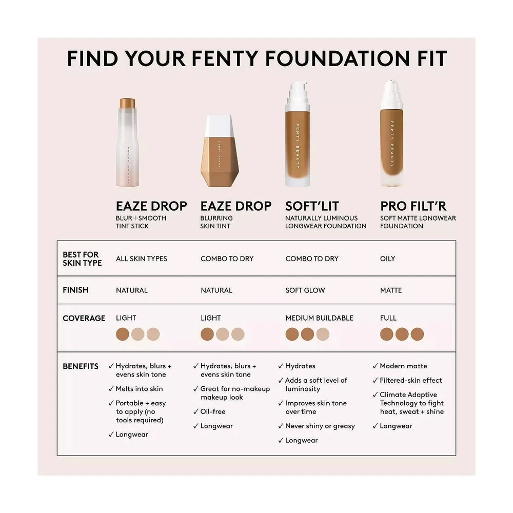 FENTY BEAUTY Eaze Drop Blurring Skin Tint – Lightweight Foundation – 2592609