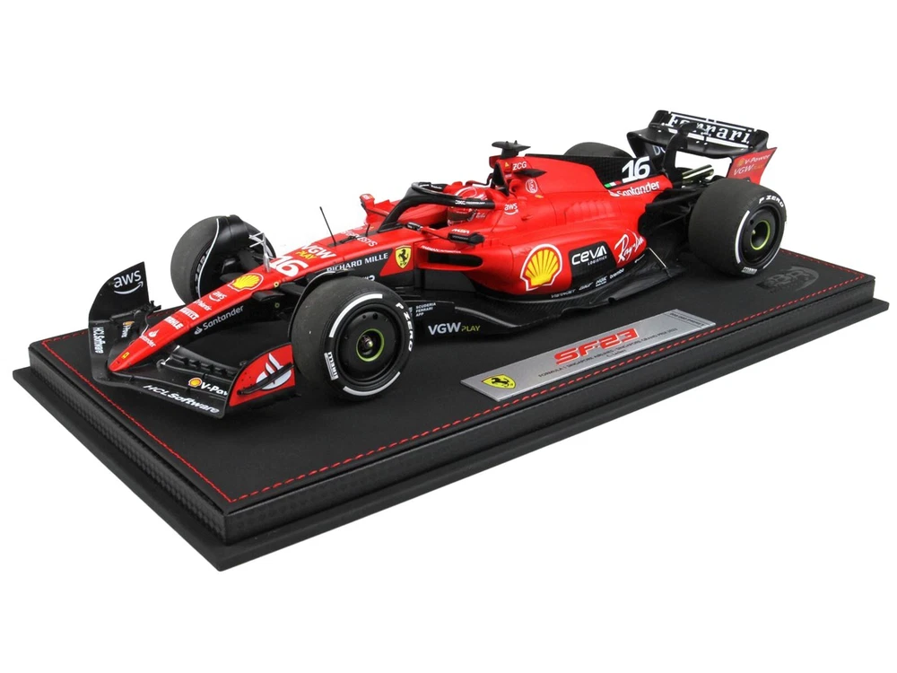 SAVE WHEN BUYING MORE!!! Buy as many items as you wish and we will ship them for one low shipping cost to 48 continental U.S. states physical addresses. Example: Shipping cost for most 1/24 scale items is $10, for 1/18 scale items is $12. If you use Add to cart button and purchase 5 items in 1/24 scale and 5 items in 1/18 scale, your shipping cost will be only $12 for 10 items. In order to request combined shipping for signed in desktop users: Please use Add to cart button for desired items, click Go to cart button and press Request total from us before paying and we will send combined shipping invoice shortly. If checking out as a Guest or using a mobile version, please use Add to cart button then click Go to cart button , press Go to checkout button, request extra shipping refund in Message to seller section and finalize payment by pressing Confirm and pay button. We will refund extra shipping cost shortly. DESCRIPTION: Brand new 1/18 scale diecast car model of Ferrari SF-23 #16 Charles Leclerc Formula One F1 "Singapore GP" (2023) Limited Edition to 60 pieces Worldwide die cast model car by BBR Models. Brand new box. Real rubber tires. True-to-scale detail. Detailed interior, exterior. Officially licensed product. Comes in plastic display showcase. This model does not have any openings. Manufacturer's original unopened packaging. Made of diecast metal with some plastic parts. Dimensions approximately L-12, W-4, H-2.25 inches. The Singapore Grand Prix broke Red Bull's seasonal dominance and brought Ferrari back to the top step of the podium after more than a year. The victory by Carlos Sainz under the night lights at the Marina Bay street circuit marks Ferrari's first win since July 10, 2022. Base in synthetic leather, hand stitching - Limited edition. PAYMENT INSTRUCTIONS: We gladly accept PayPal. Tracking info is free upon request. SHIPPING INFO: We do combine shipping cost for two or more items purchased. Please check shipping and payment section. In order to receive combined invoice for multiple purchases, please purchase items and let us know when you are done shopping, so we can send you one combined invoice. We can only combine shipping cost if items paid in one transaction. Dear Valued Customer! We appreciate your business. BUY WITH CONFIDENCE Fast Order Fulfillment 99% of orders are shipped within 24 hours or sooner. Simple Return Policy Thirty days simple returns. More than 10 Years of Experience Family owned and operated, we’ve had the experience of selling online for more than 10 years. Satisfaction Guaranteed! Our feedback says it all. And now, we hope to have the chance to prove we are the best to you! Competitive Pricing and Unrivaled Selection We are the number one direct distributor of diecast model cars in the USA, so we are able to provide very competitive pricing. Our stock selection is unrivaled with over 4,500 different items. Quality Shipping & Handling We package all our orders with care using bubble wrap to protect models from damage in transit. Each model that has a fragile window box is covered with carton protection. Excellent Customer Service Our customer service is second to none with thousands of returning, satisfied customers from all over the world.