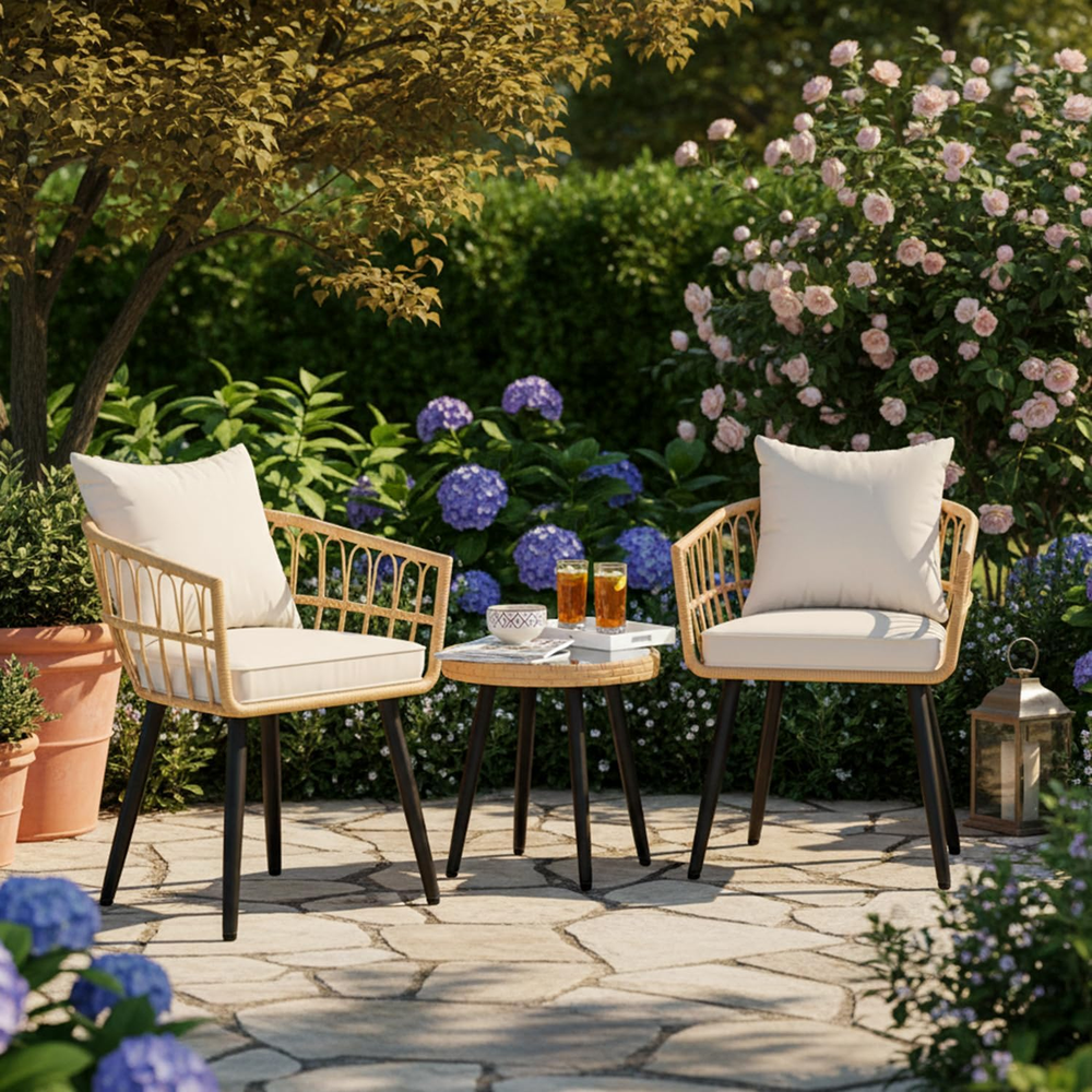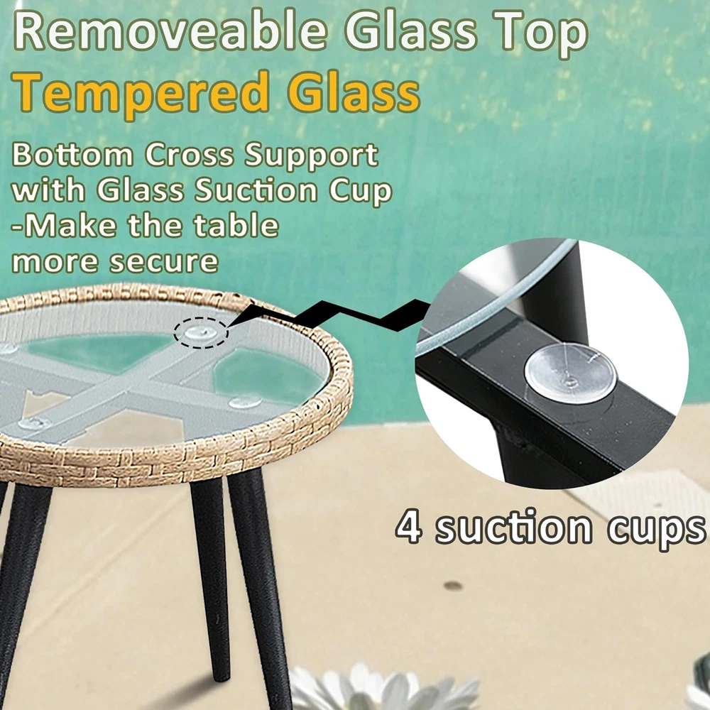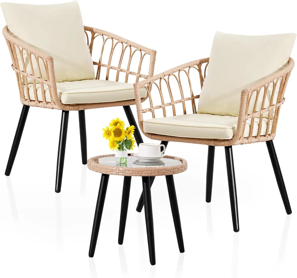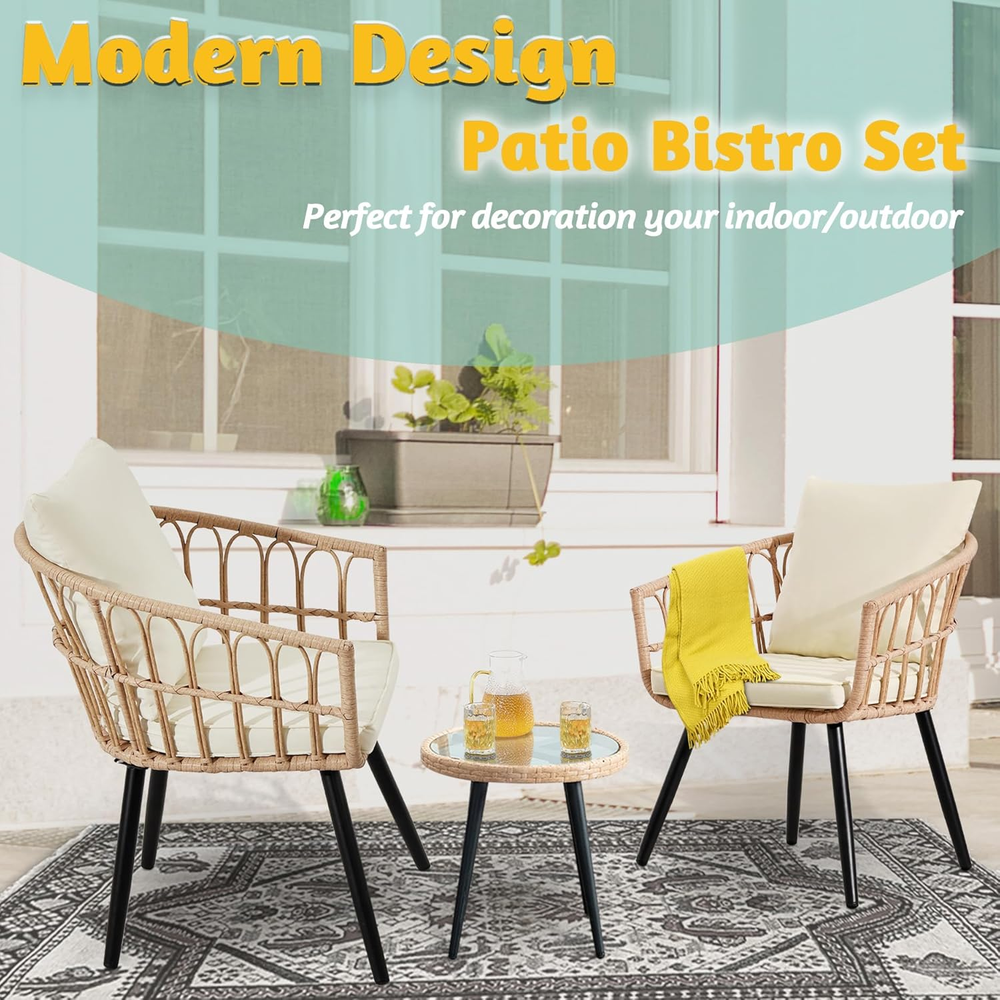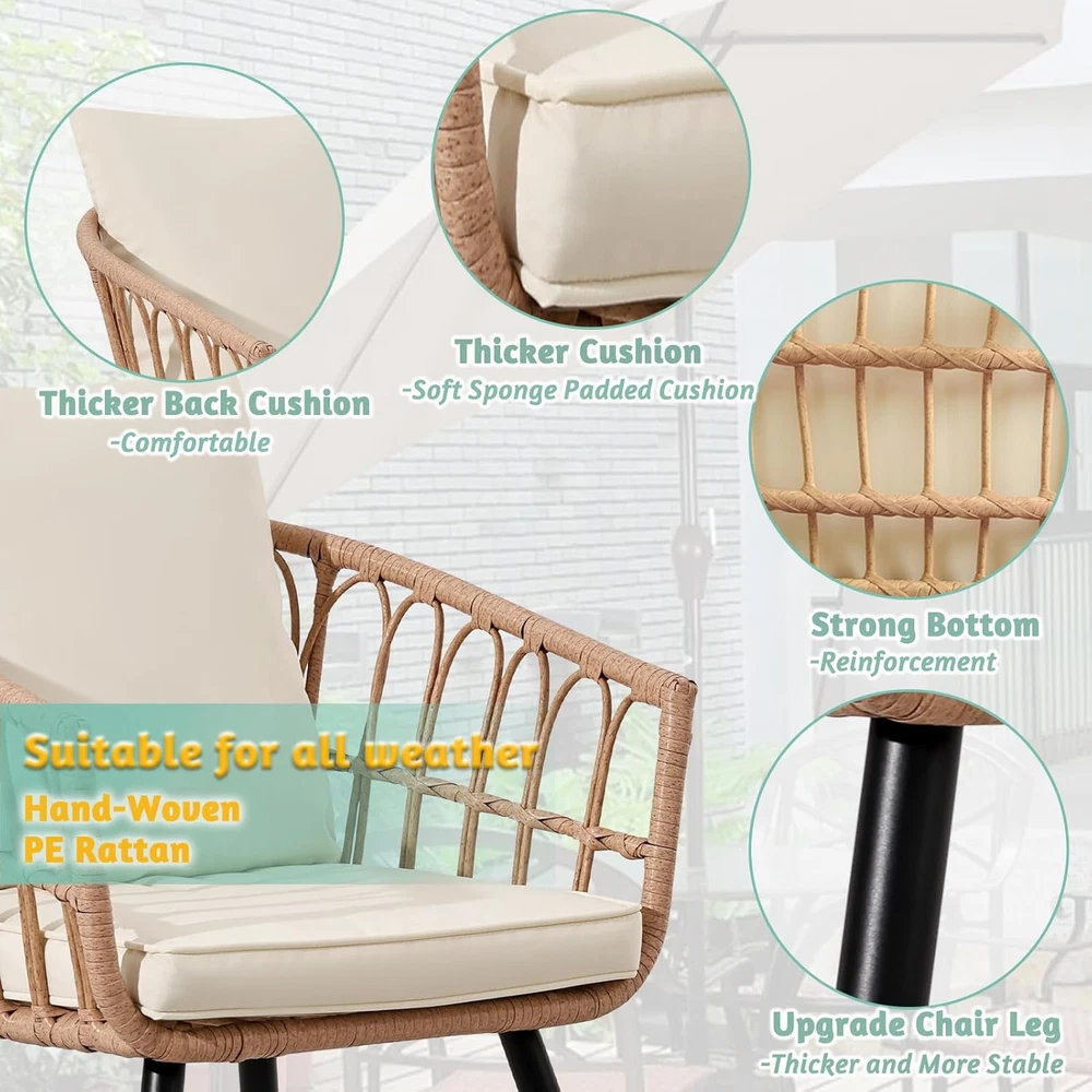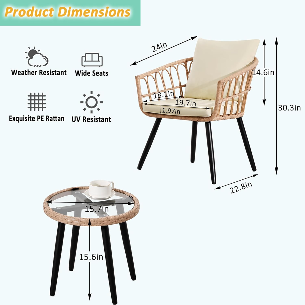 FHFO 3 Piece Outdoor Patio Bistro Set, Wicker Table and Chairs Set of 2, All-Wea