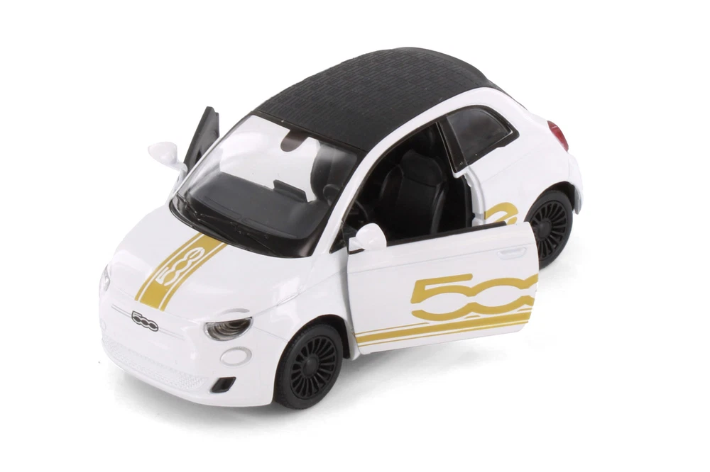 Don't miss out on this legendary compact car from Kinsmart! This Fiat 500e Livery Edition is a 1/28 scale model replica. It comes in white and features openable doors and pull back action. It's an exceptional selection for any compact car collection, and an awesome find for enthusiastic Fiat fans! Features: Fiat 500e Livery Edition - 5440DF Kinsmart Model Vehicle 1/28 Scale Collectible Model Compact Car This is a 5"L x 2.25"W x 2"H Diecast Metal model with some plastic parts Openable Doors And Pull Back Action Manufactured by Kinsmart - Livery Edition Series