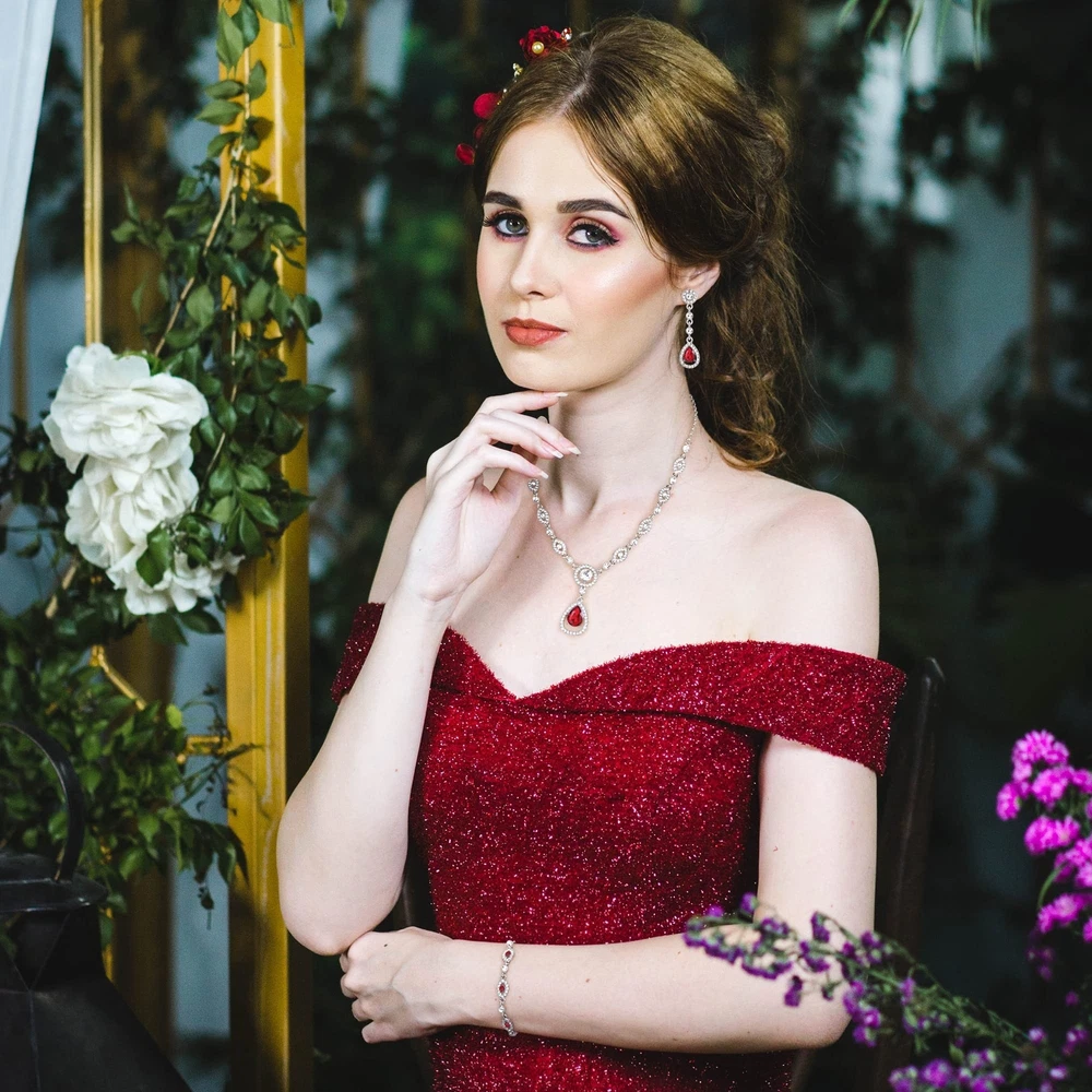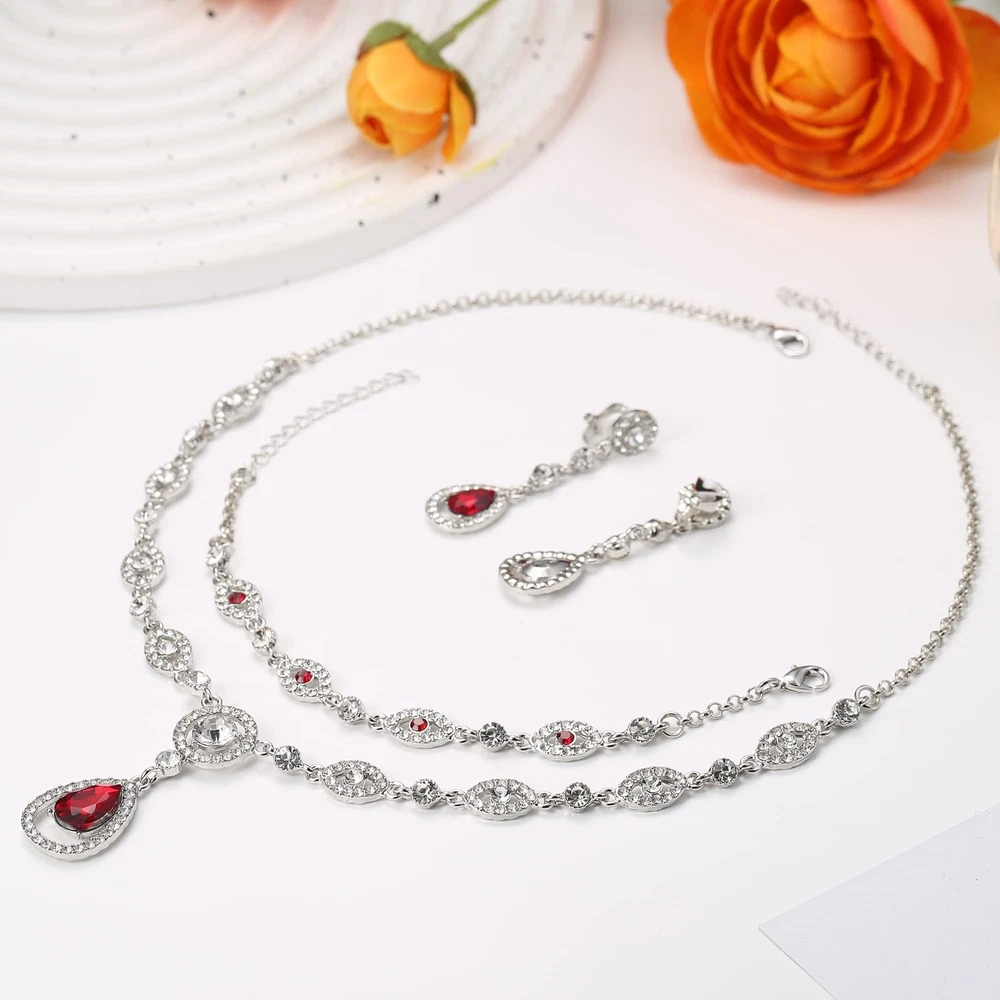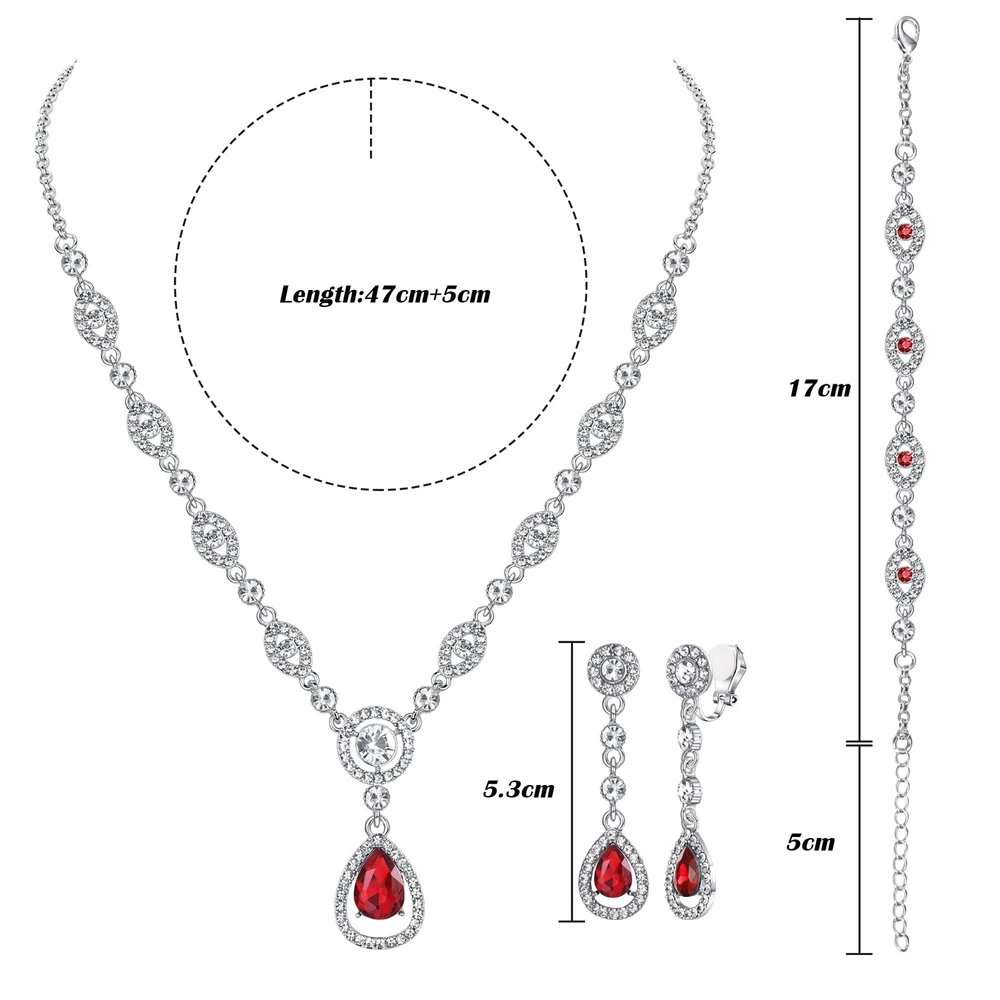 FIBO STEEL Clip on Rhinestone Jewelry Set for Women Party Prom Bridal Bridesmaid Jewelry for Wedding Teardrop Pendant Earrings Necklace Bracelets Set Product Details Color: Red Brand: FIBO STEEL MPN: Does not apply UPC: Does not apply EAN: Does not apply Package Dimensions : 1 x 0.8 x 0.5 inches; 0.35 ounces Department : womens Date First Available : November 10, 2022 Manufacturer : FIBO STEEL Brand, Seller, or Collection Name: FIBO STEEL Metal stamp: no metal stamp Metal: alloy Material: Metal Gem Type: Crystal Clasp: Lobster Clasp Ring size: adjustable