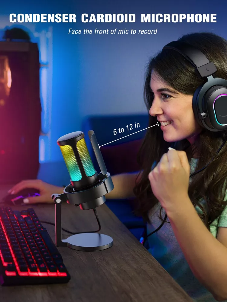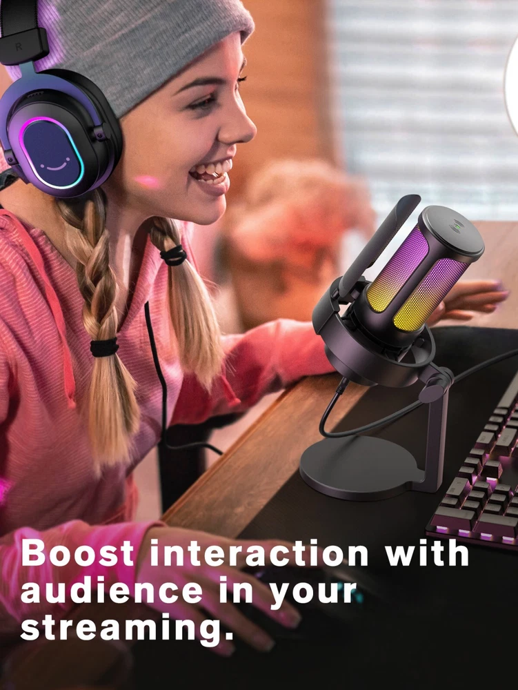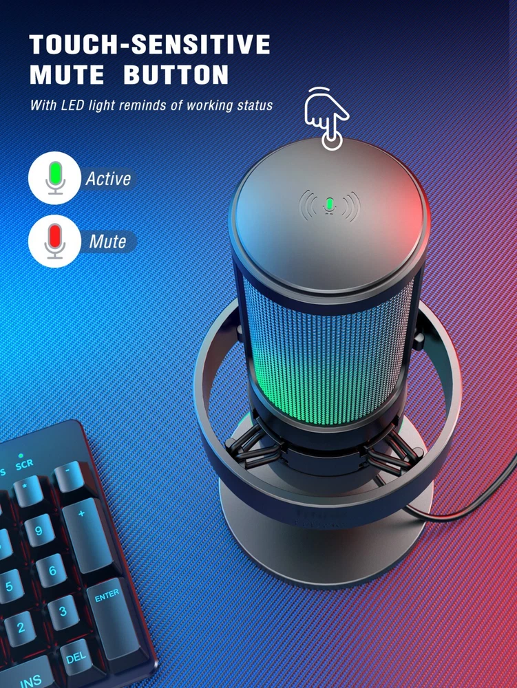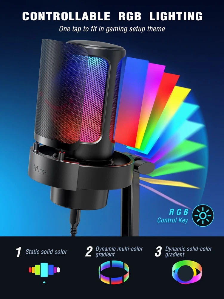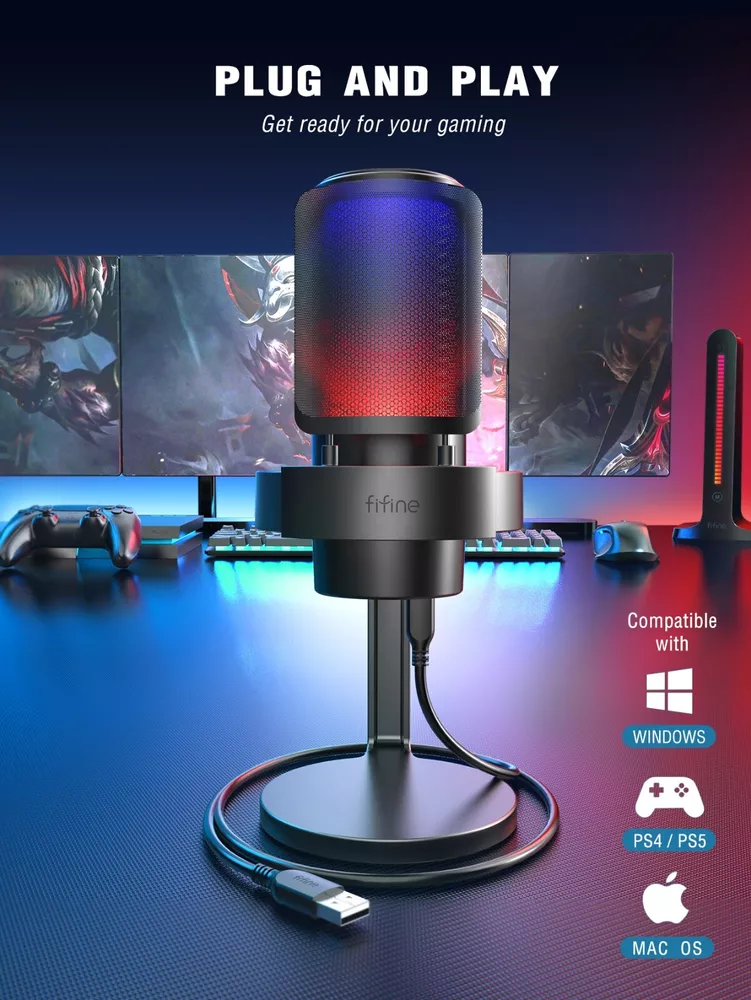 Application Situation: PC Computer Gaming, Streaming, recording, podcast, broadcast Color: Black Brand: FIFINE Supporting Equipment: PS4/PS5, Laptop, Desktop, Window, MAC( not compatible with Xbox) Item Weight: 712G Polar Pattern: Cardioid Suitable For: Broadcasting Connectivity: USB Features: Plug and Play, Tap-to-Mute, Adjustable Mic Gain Knob, Pop Filter, RGB, Shock Mount, Desktop Mic Form Factor: Condenser Microphone Country/Region of Manufacture: China Manufacturer Warranty: 1 Month Transducer Type: Condenser