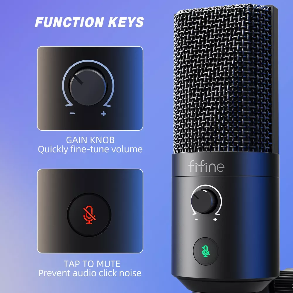 Product description : The FIFINE E669PRO1 is a cardioid pattern condenser recording USB microphone, with stable tripod stand, used on the desktop, anti-slip performance is good. It is convenient when you are doing voice overs or livestreams on YouTube. USB output plug and play for daily recording meeting work. This USB podcast microphone features a gain knob, that freely adjusts the microphone volume and sensitivity during the recording process to get a great sound. Clicking the mute button can quickly mute or unmute the condenser recording microphone, instead of pressing or operating the computer, to avoid emergency situations during live broadcasts or podcasts. The detachable pop filter enhances your recording session effectively reduces the plosive, pops, crackles, wind interference, breath sounds when recording vocals. It don't muffle the sound and are washable, it can provide clean recording quality. E669PRO1 mic offering smooth and extended frequency response and cardioid pattern, it is great at leaving background noise out of the recorded audio to improve your recording quality. Features: [Mic Function Keys] Function keys on the front of the mic saves more computer control. Soft-touch mute button helps you instantly mute the gaming microphone without audible noises when streaming or podcasting, giving you greater control and flexibility during recording sessions or gaming sessions. And the mute indicator makes it easy for you to check if it's muted or not. By moving the microphone gain knob left and right when Twitch or Discord, the volume of the microphone can be adjusted in real-time. Adjust the volume to what you need at the time but no need to yell or whisper. [Convenient USB Setup] Plug and play recording USB microphone for PC, with 6.5ft USB cable included for computer PC laptop, is connected directly to USB port for recording music, computer singing or podcast. The office microphone for computer is easy to use and install. USB-powered design, the condenser microphone for recording no need the 48v Phantom power supply, works well with Cortana, Discord, voice chat and voice recognition. The podcast microphone for Mac meets most of your daily recording needs. [Clear Sound Quality] Cardioid gaming microphone for PC captures your voice properly, producing clear smooth and crisp sound without static noise. Great gift for gamers/streamers/youtubers at isolating the sounds from the main source and separating them from any background noise. Mic removable pop filter help eliminate plosives like "b", "p" "t" and some of static noise emitted from the ambient areas like keyboards and game console buttons without altering the natural sound of the mic, can be used for singing, conference room, news interviews and other places that you need quality sound. [Durable Metal Design] Solid sturdy metal construction design, the computer microphone for meetings with stable tripod stand is convenient when you are doing voice overs or livestreams on Youtube. Durable material extends the service life of the voice-over microphone. Calibrate the desktop microphone with thumbscrew adjusting can offers you better recording angle. Built-in locking screw prevents the USB PC microphone from loose falling and ready to record or podcast at any time. [Compatible With Multiple Applications] For Discord OBS Teamspeak Twitch, the amazing computer microphone with Zoom Webex Amazon Chime. The desk mic is great for Audacity. Kindly remind that you need to disable the sound activated recording function of the application (like "Automatically adjust volume" of Zoom) if you do not want your recording volume to decrease or jump around. (Incompatible with Xbox and Phones) Warm Tips: 1. Plug and play gaming USB microphone for PC/Macbook/laptop and it works well with PS4/PS5. (Incompatible with Xbox) 2. It is not compatible with mixer or audio interface.Do not recommend using with phone due to insufficient power supply and sound quality may be affected. Use a genuine USB cable or adapter for connection if try. 3.Adjust the gain to a proper level as you need by the gain knob and sound settings, and speak to the front of the microphone within 6-12 inches(15-30cm) to pick up the sound loudly and clearly. If possible, please use the mic in a quiet room or space. 4.Put USB computer microphone on the desk mount, keep the small end of the metal ring upside and screw it up to the bottom of the mic. The sequence from up to down is the mic, the mount and the metal ring. Specifications: Type: Condenser Polar Pattern: Cardioid Sensitivity: -43±3dB Operating Current: 30-40±5mA Frequency Response: 80Hz-20KHz Output Connection: USB Power Supply: 5±0.25V Package included: 1*Condenser Microphone with Pop Filter 1*Tripod Stand 1*6.5ft USB C to USB Cable 1*User's Manual Contact us: 1. If you have any questions please contact us by email, most emails are responded within 24 business hours. 2. Please send email directly or try send email by other account. The feedback forum is not the place to leave us a message. 3. If you never hear from us please go to your "Inbox" under eBay "My Messages" section to look for our messages as we always send our messages directly through eBay to your email account and you can always find our messages there regardless of what email problems you may experience.