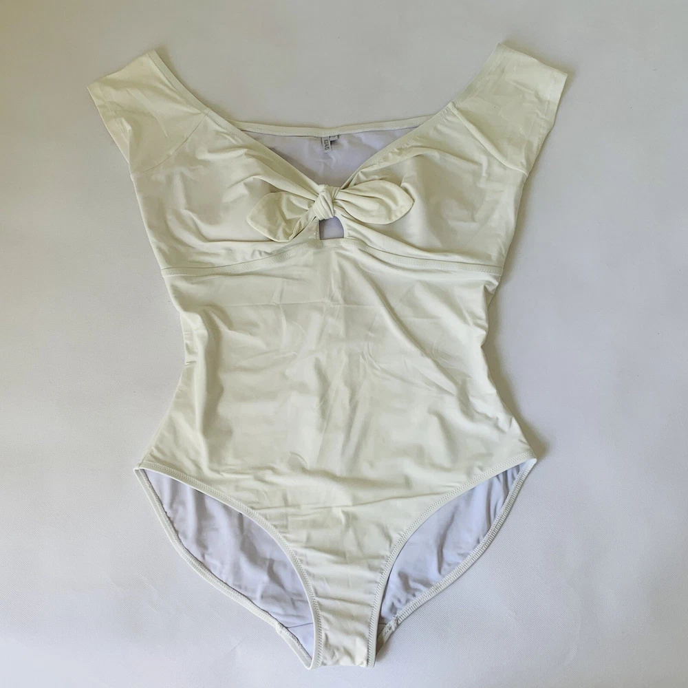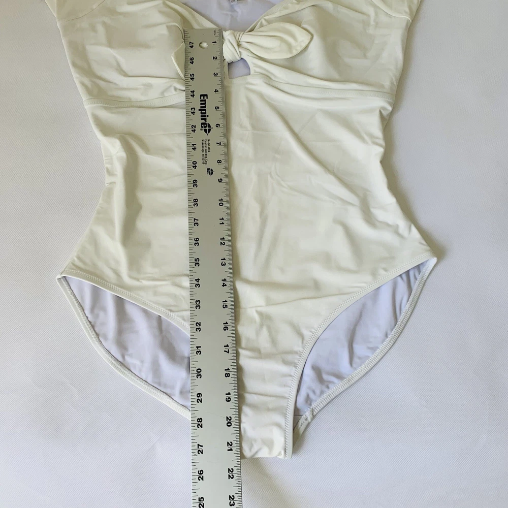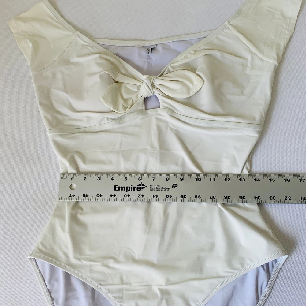 - Fig Leaves One Piece Swimsuit Women 18 White V-Neck Bow Cutout Built In Bra Can be off shoulder Nylon Elastane See photos to c ompare your personal measurements to the garment's measurements to ensure proper fit. Great preowned condition. No flaws or stains. FAST Shipping! 1-3 business days. Offers welcome! Tags: everyday fashion stylish trendy classic spring summer fall winter seasons apparel comfy comfortable easy to wear classy casual favorite y2k 80s 90s beach beachy coastal beachy vacation vacay travel resort pool swim swimming florida tropical island cruise wear bright cruising wardrobe seaside ocean seashell mermaid lagenlook relax nautical nature summertime water waterfall lake lakeside surf turf boating tanning yacht sailing sailor sunbathing swimmie bathing set matching versatile essential