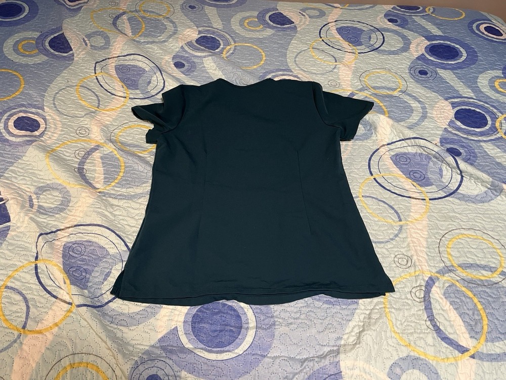 FIGS Scrub Top Women XS Blue/Green V Neck Short Sleeve Technical Medical Nursing