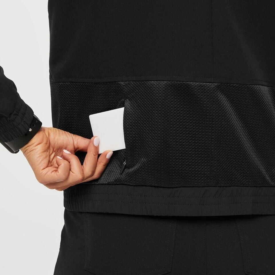 Brand New With Tags In Packaging Total of five pockets One invisible side zip pocket Two zip hand pockets Two interior patch pockets Mesh lining with back yoke vent for airflow and ventilation Mesh contrast panel at zip pocket Lightweight FREEx™ sleeve lining, hem and cuff for breathability and movement TPU coated seams for sleek finish and durability Engineered with Technical Comfort™ All of our scrubs are named after places we've donated scrubs and people we've met along the way! Features our proprietary FIONx™ fabric with four-way stretch, moisture-wicking, anti-wrinkle and ridiculously soft properties. Features Silvadur™ antimicrobial technology, which provides odor protection, inhibits the growth of bacteria, yeast, algae, and other microorganisms that cause odor and fabric damage, and increases the lifespan and durability of the product. Our proprietary FREEx™ fabric is engineered from 92% recycled Poly and ultra-lightweight, durable, anti-static (for pet hair), water repellent and features four-way stretch technology. FIONx™ Exterior: 72% Polyester, 21% Rayon, 7% Spandex FREEx™ Sleeve lining: 92% Recycled Polyester, 8% Spandex Body lining: 100% Polyester Machine wash cold inside out. Tumble dry low. Low heat iron if needed.