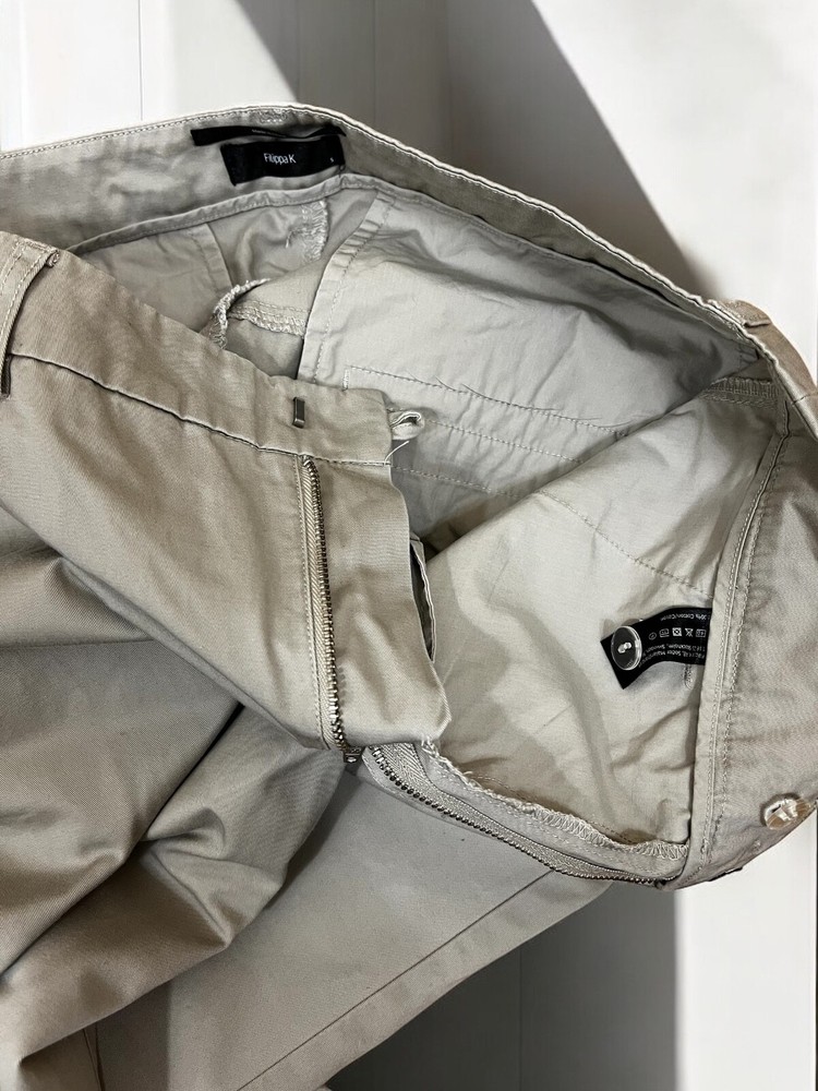 Crafted with a blend of cotton and linen, these gray chino pants from Filippa K offer both comfort and durability. Tailored for a regular fit with a straight leg style, the pants provide a classic look suitable for a variety of occasions. The flat front design, combined with a zip and button closure, creates a smooth silhouette that's ideal for travel, casual outings, or business settings. The size S pants have a 30-inch waist and a 32-inch inseam, ensuring a perfect fit for those who prefer their clothing with a trim and tailored aesthetic. Embrace the simplicity of these solid-patterned trousers as they effortlessly enhance your wardrobe with their versatile appeal and superior craftsmanship. Measurements: Waist: 40 cm Length: 108 cm Inseam: 83 cm Leg opening: 16,5 cm Front rise: 26 cm Back rise: 38 cm Feel free to make me any reasonable price offer.